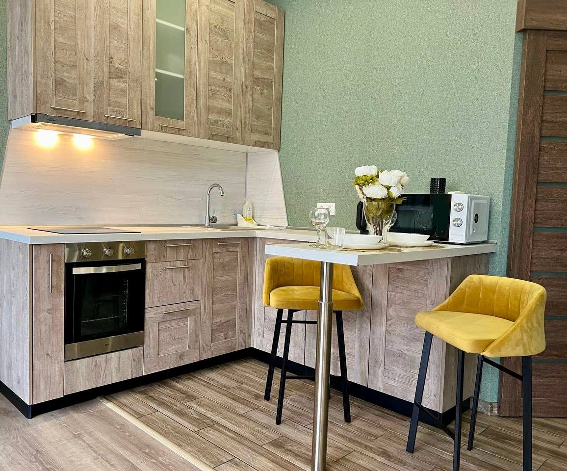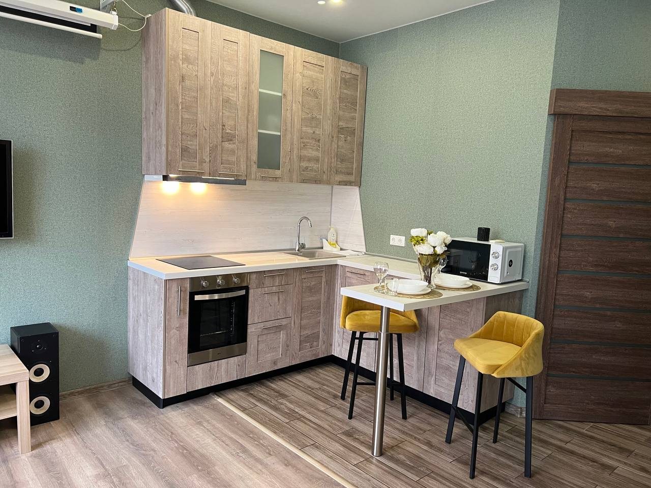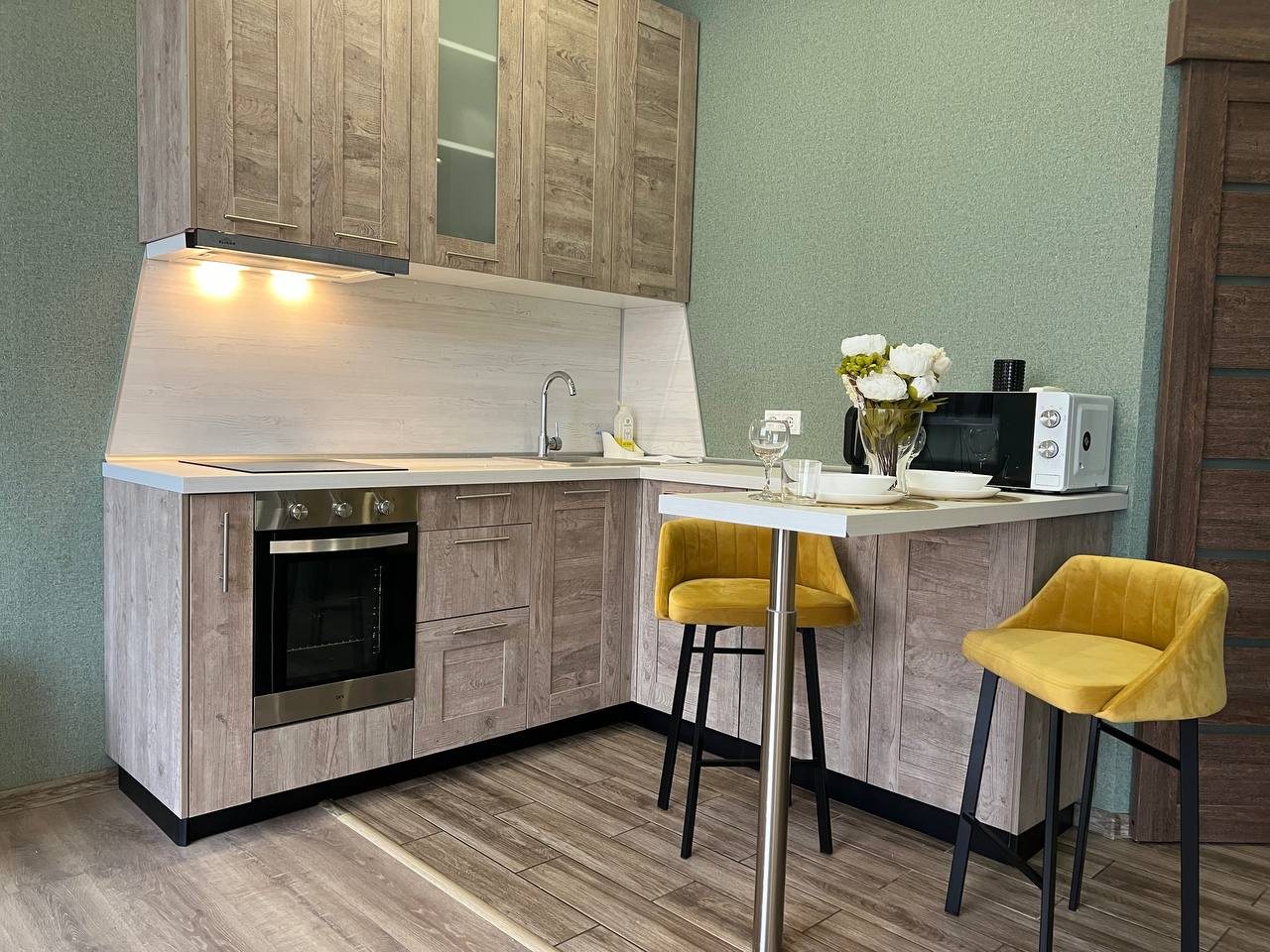 Кухня оснащена гарнитуром, варочной панелью, вытяжкой, духовым шкафом, микроволновой печью, электрочайником и набором посуды. В доступности кондитерская, кафе, пекарня и продуктовый магазин.