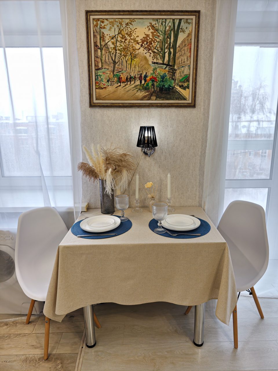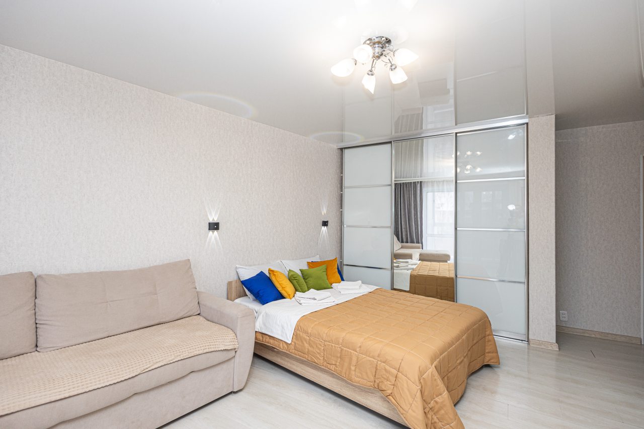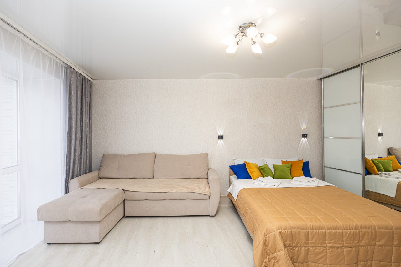 Светлые апартаменты оснащены удобными спальными местами, шкафом-купе, телевизором, кухонной зоной и собственной ванной комнатой. Доступна точка wi-fi. Санузел укомплектован современной сантехникой и средствами личной гигиены.