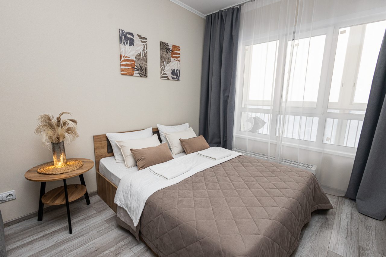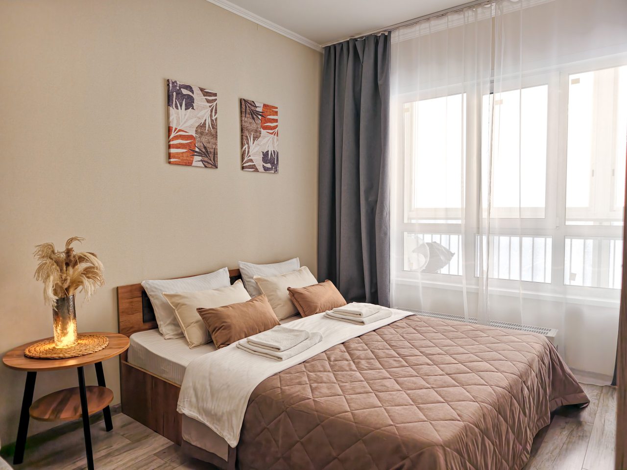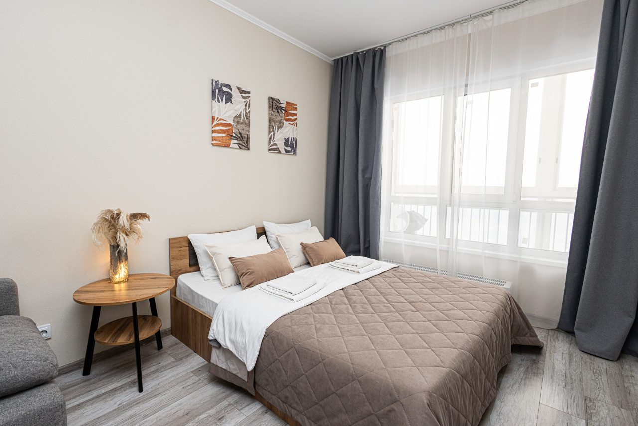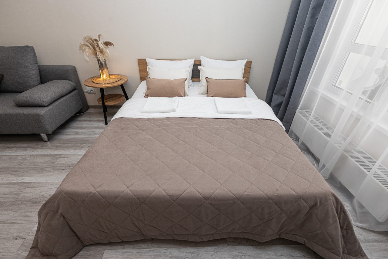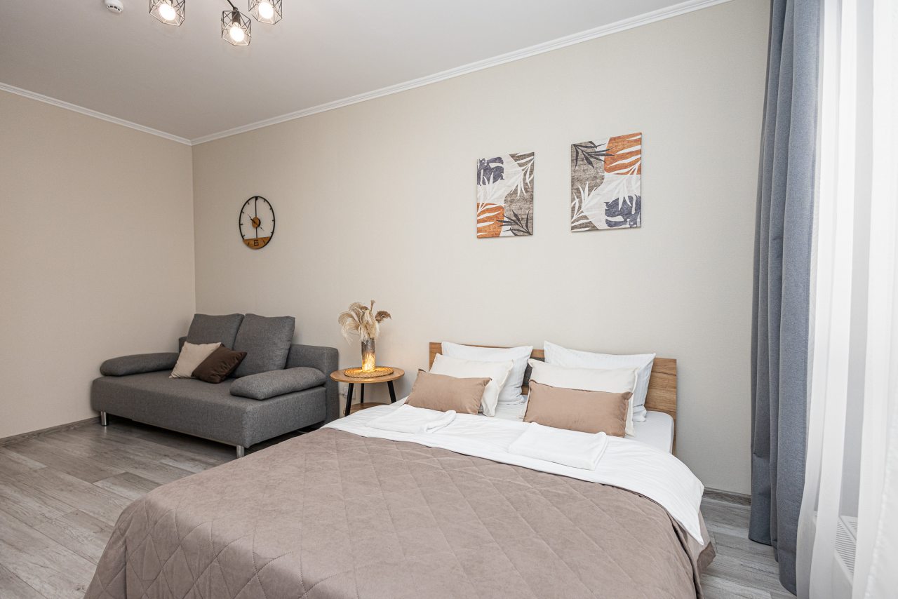 Среди основных удобств, которые ожидают вас внутри: двуспальная кровать с качественным матрасом, затемненные шторы, телевизор, шкаф с зеркалом, мягкий диван, полноценная ванна.