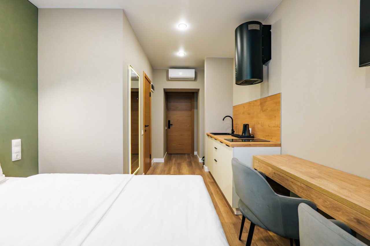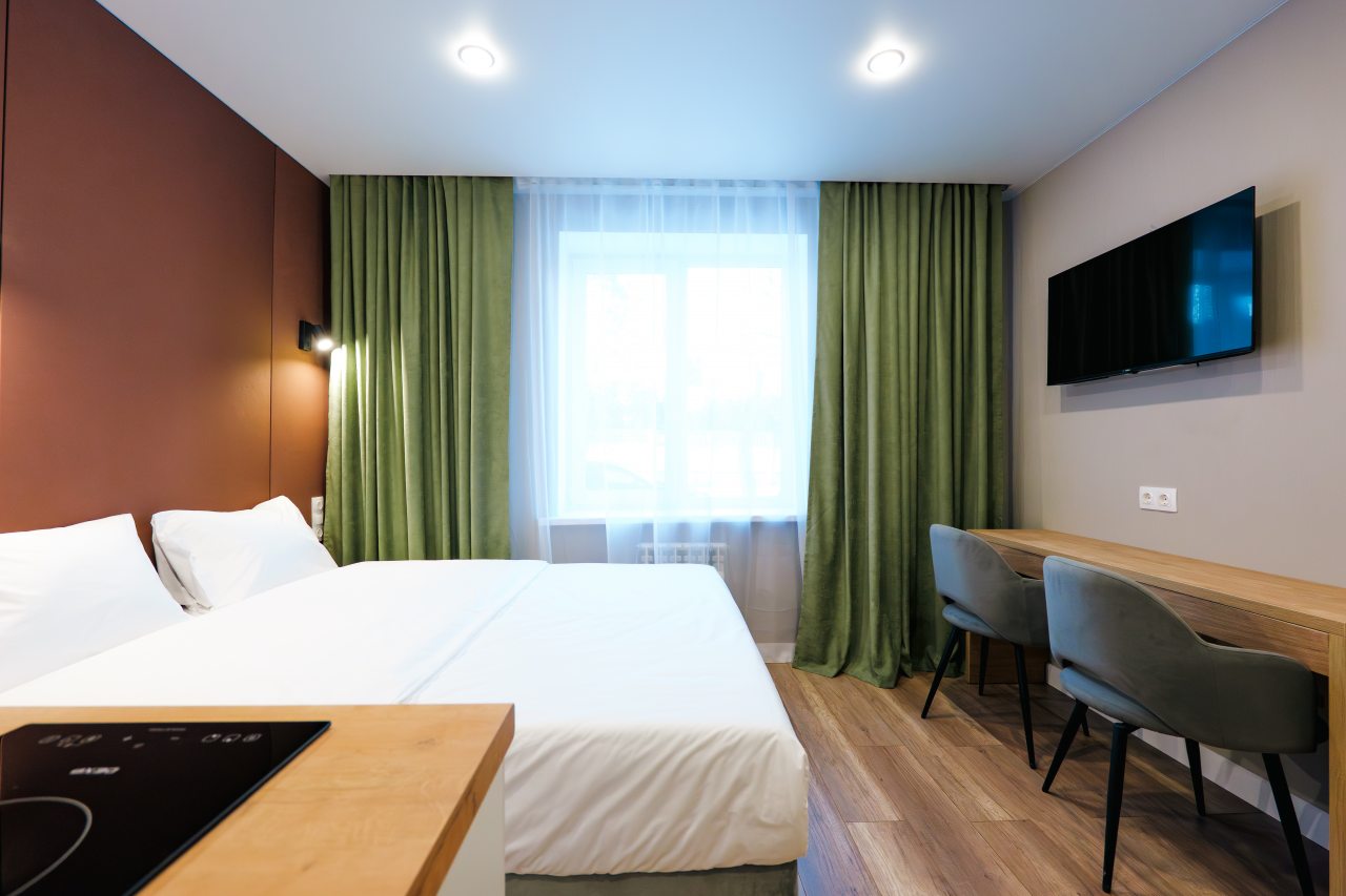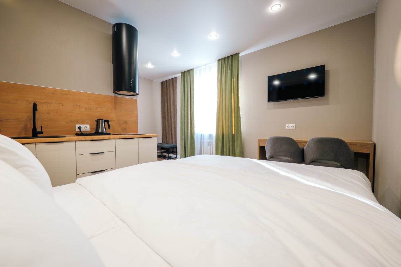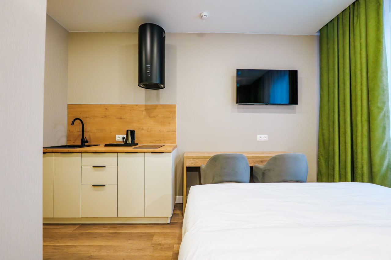 Апарта-отель располагает 38 стильными номерами для релаксации и продуманными коворкинг-зонами, ориентированными на ваше самочувствие. Дизайн вдохновлен природой: натуральные материалы, естественная палитра и живые растения создают атмосферу спокойствия. Пространства наполнены светом, мягкими формами и природными текстурами, способствуя восстановлению сил и внутреннему балансу.