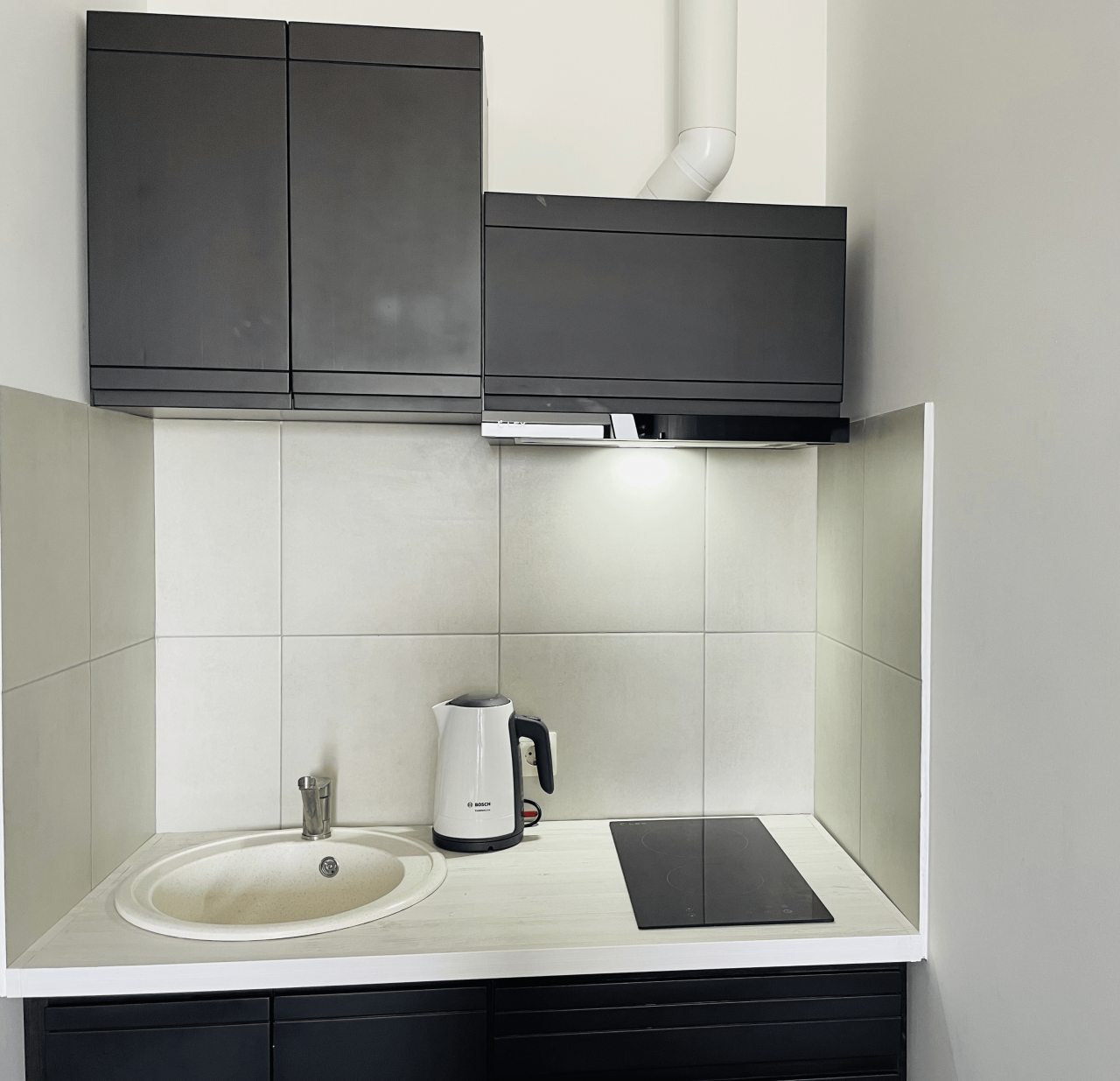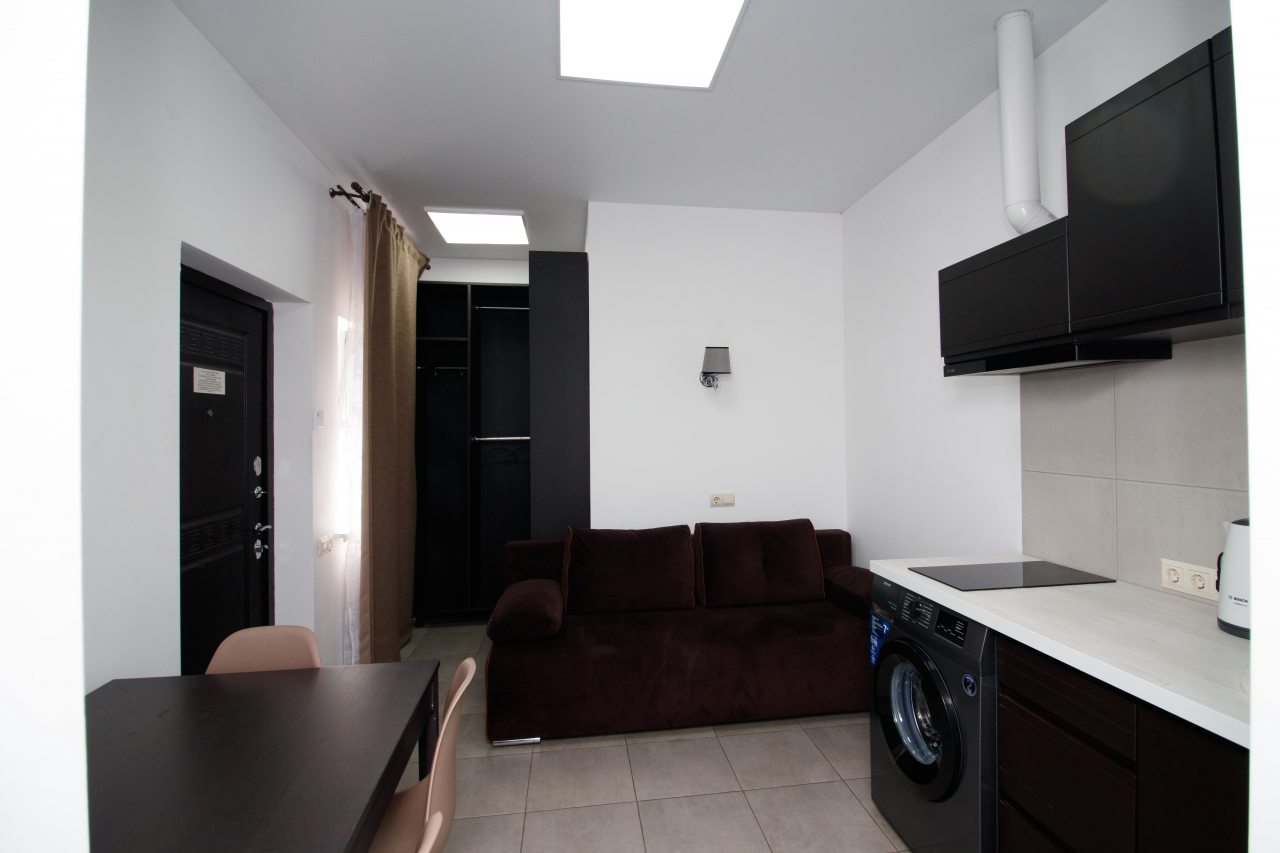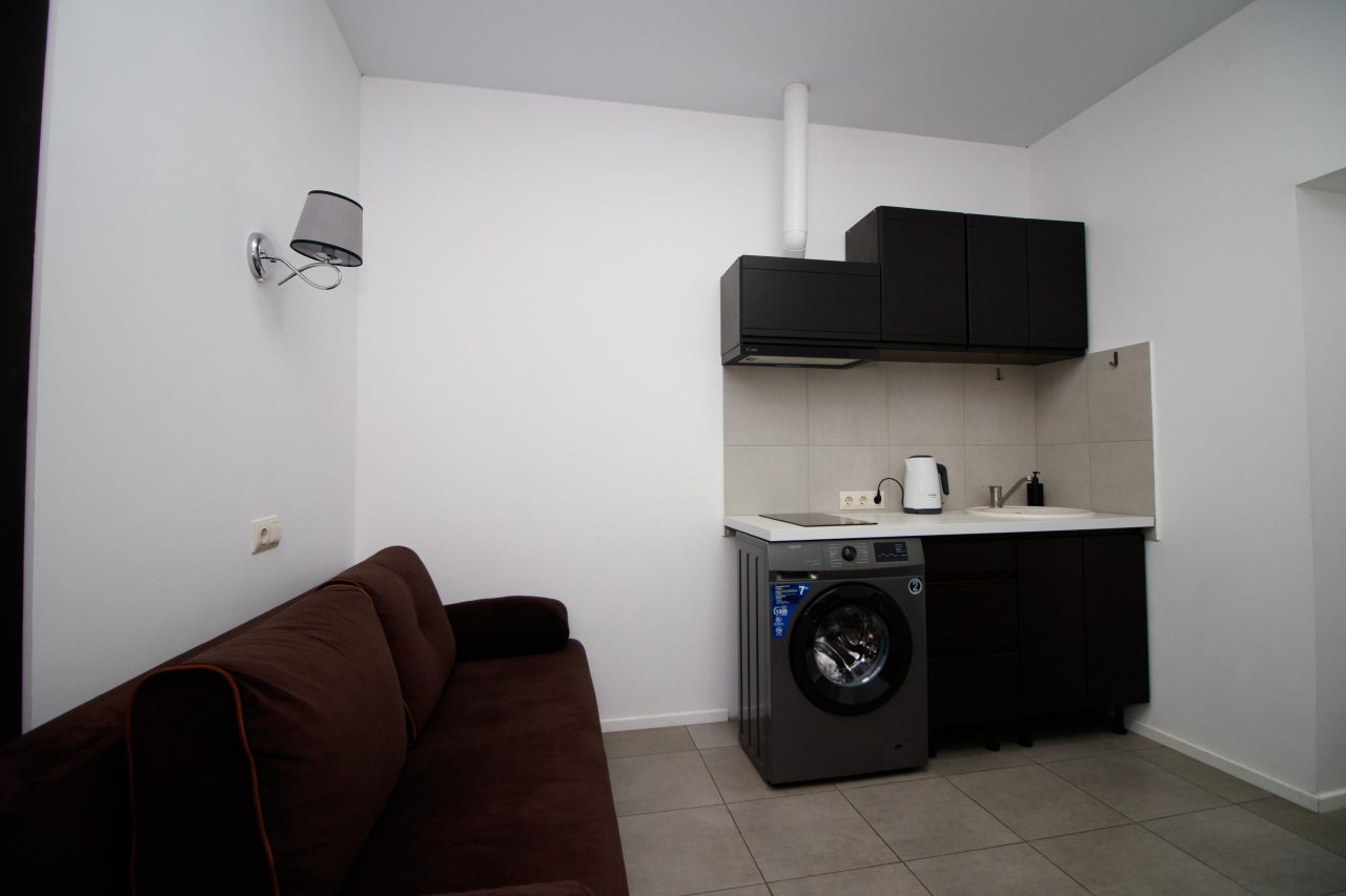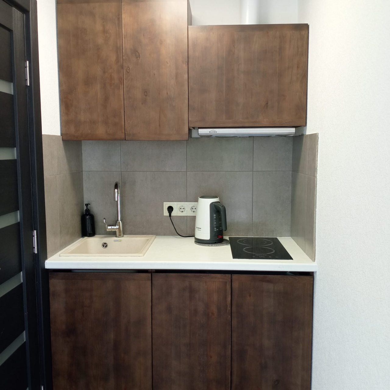 В кухонной зоне размещён гарнитур, необходимая бытовая техника и обеденный уголок. В пешей доступности располагается кафе, продуктовые магазины.