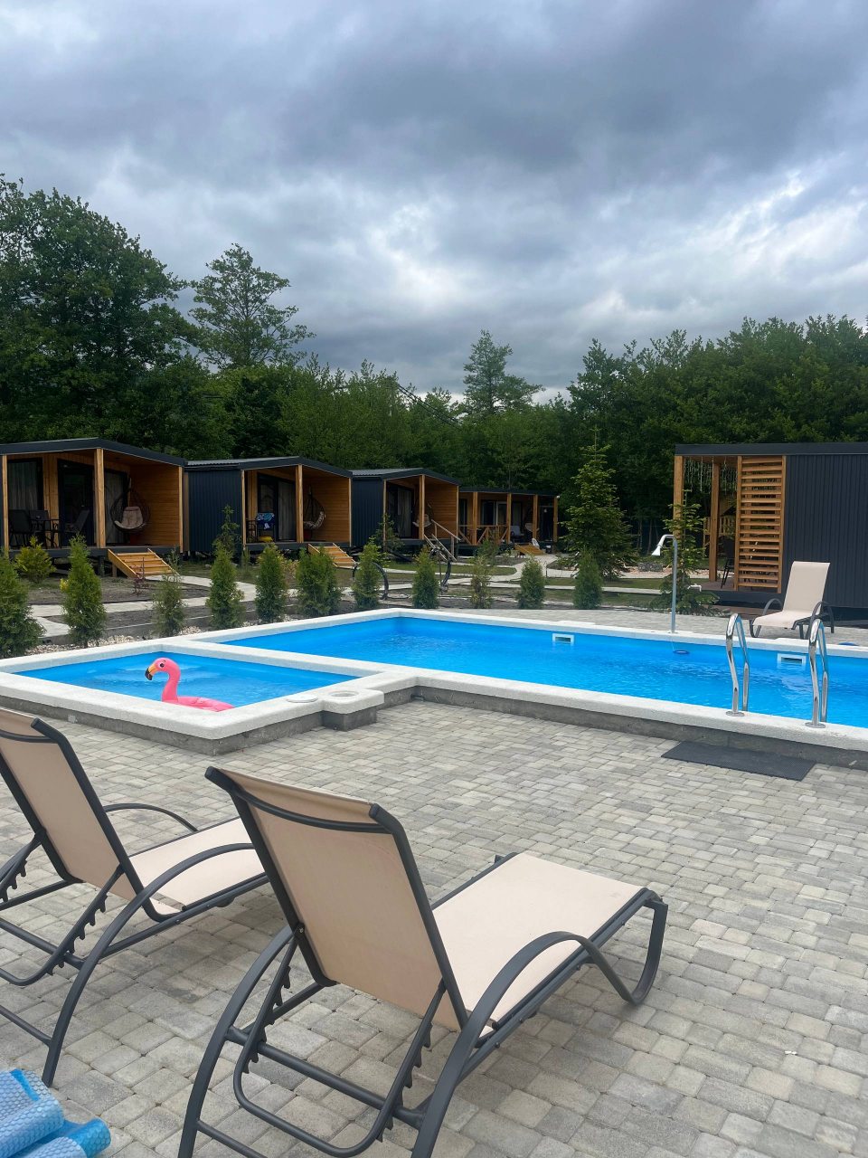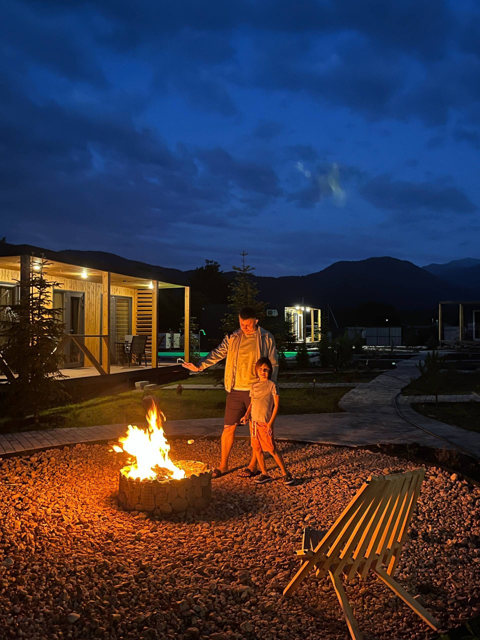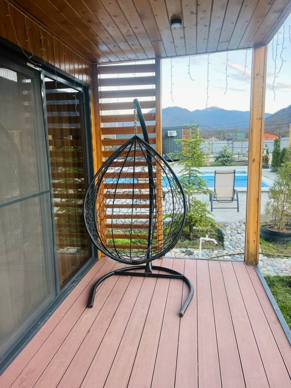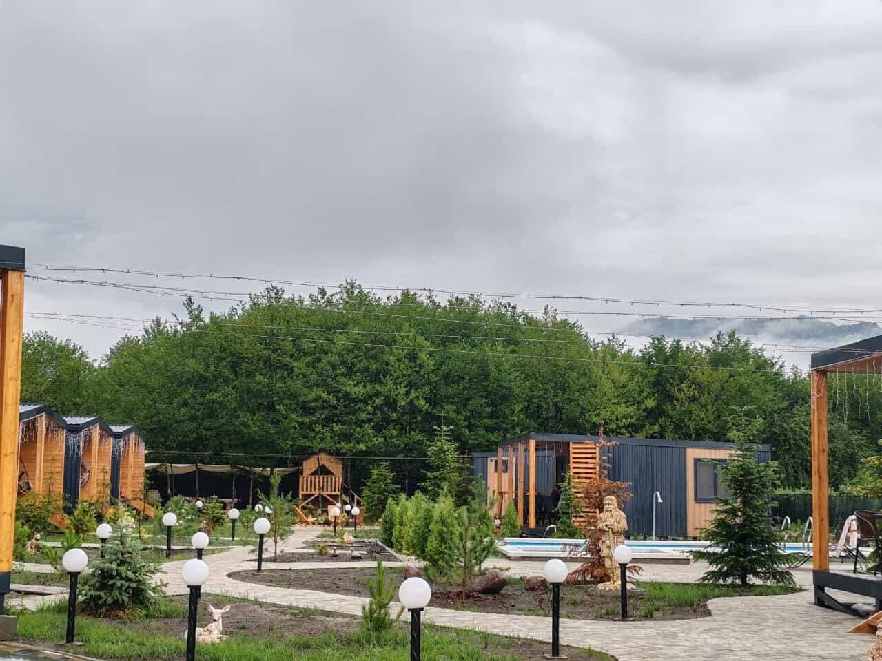 Отдыхали с 28-30 марта 2025 г. Хотелось подальше от суеты и шума уехать.И мы не прогадали!!! Отель находится в стороне от дороги, с видом на горы и небольшую церквушку. На территории отеля чисто и ухожено, с парковочными местами проблем нет. Есть мангальная зона, где имеются все принадлежности для приготовления мяса, овощей, и т. д, бассейн с теплой водой ( 40 гр.), и сауна с купелью на улице. Для маленьких гостей есть небольшая игровая зона). Мы арендовали 5-местный домик, в котором имеется всё необходимое для комфортного проживания (холодильник, микроволновая печь, электрическая плита, посуда, столовые приборы). В домике оооочень уютно, а как замечательно сидеть по утрам на террасе с чашкой кофе, слушая звуки природы и вдыхая чистый горный воздух. Персонал доброжелательный и всегда подскажет, если возникнут вопросы.