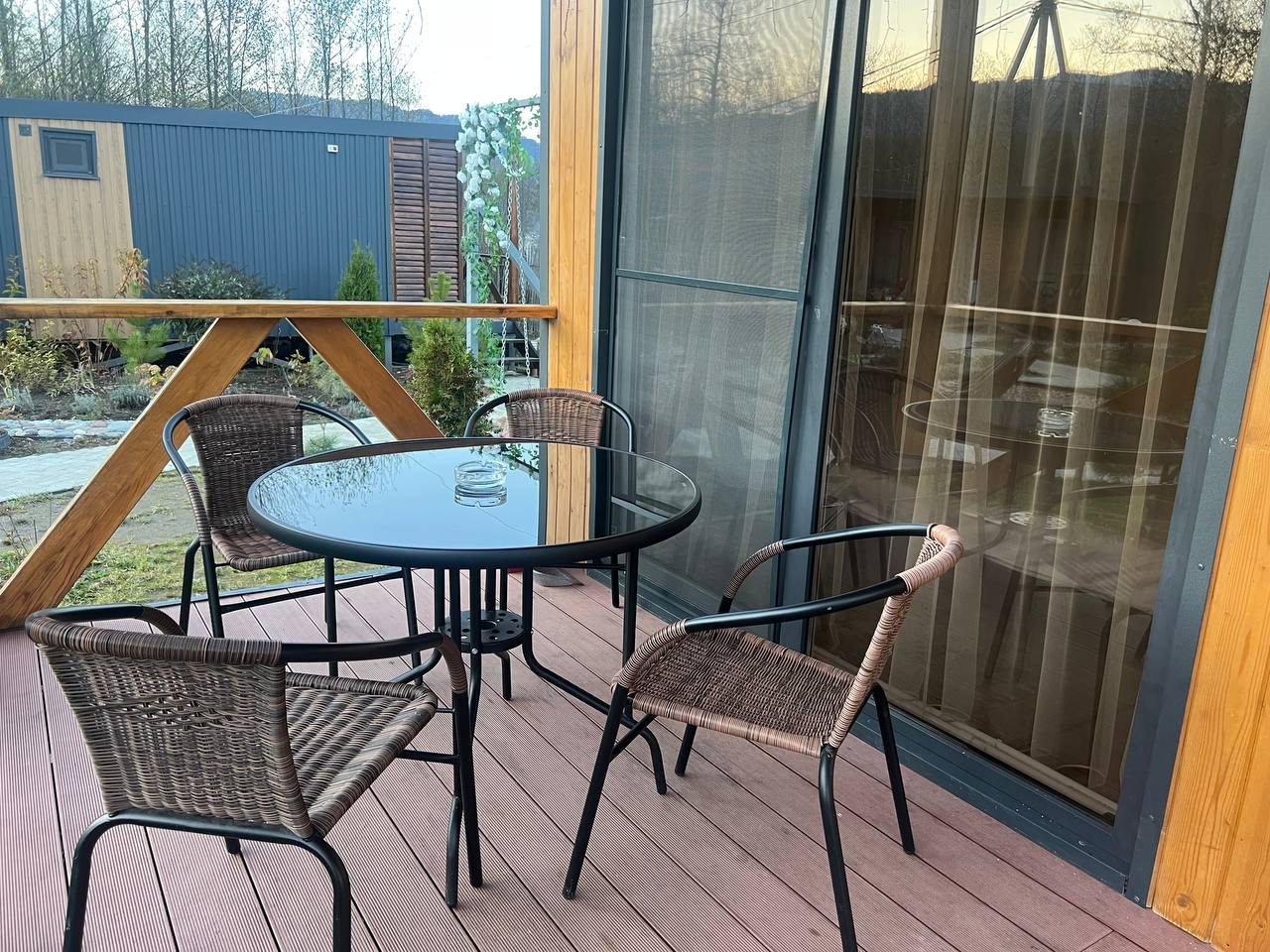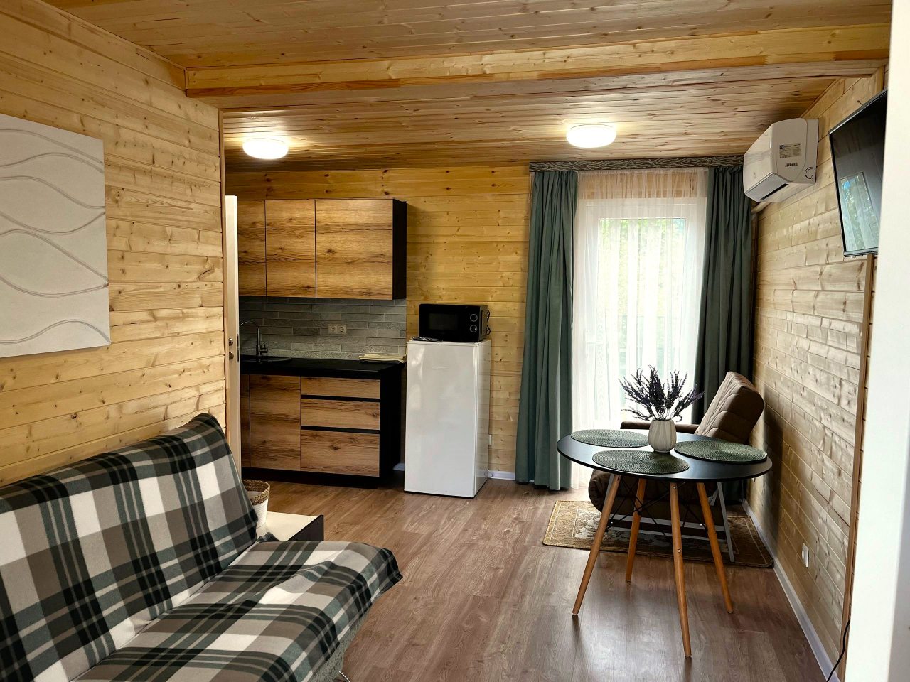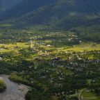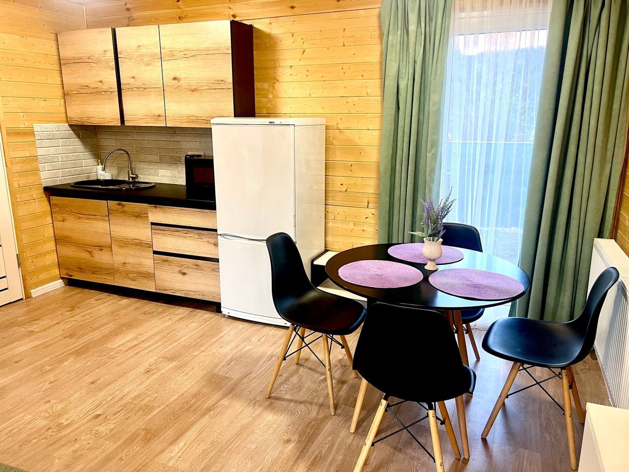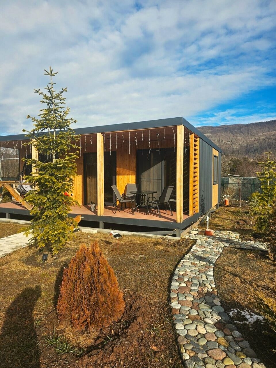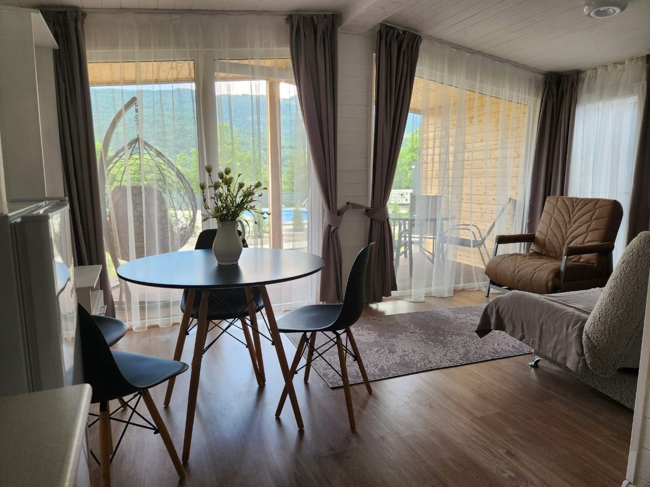 Отдыхали с 28-30 марта 2025 г. Хотелось подальше от суеты и шума уехать.И мы не прогадали!!! Отель находится в стороне от дороги, с видом на горы и небольшую церквушку. На территории отеля чисто и ухожено, с парковочными местами проблем нет. Есть мангальная зона, где имеются все принадлежности для приготовления мяса, овощей, и т. д, бассейн с теплой водой ( 40 гр.), и сауна с купелью на улице. Для маленьких гостей есть небольшая игровая зона). Мы арендовали 5-местный домик, в котором имеется всё необходимое для комфортного проживания (холодильник, микроволновая печь, электрическая плита, посуда, столовые приборы). В домике оооочень уютно, а как замечательно сидеть по утрам на террасе с чашкой кофе, слушая звуки природы и вдыхая чистый горный воздух. Персонал доброжелательный и всегда подскажет, если возникнут вопросы.