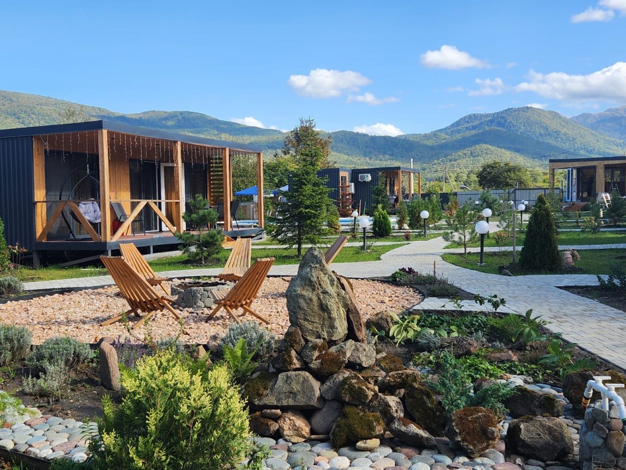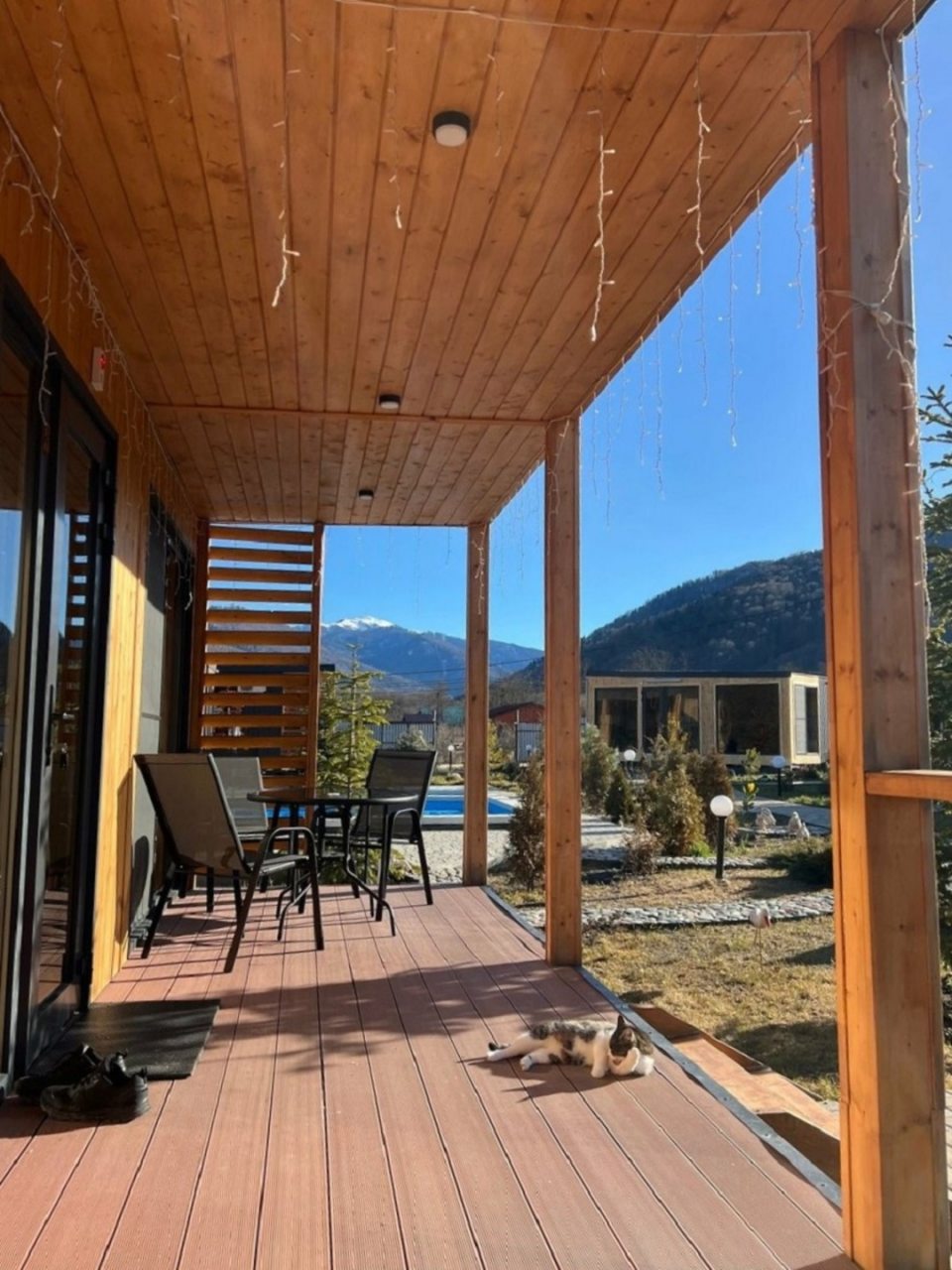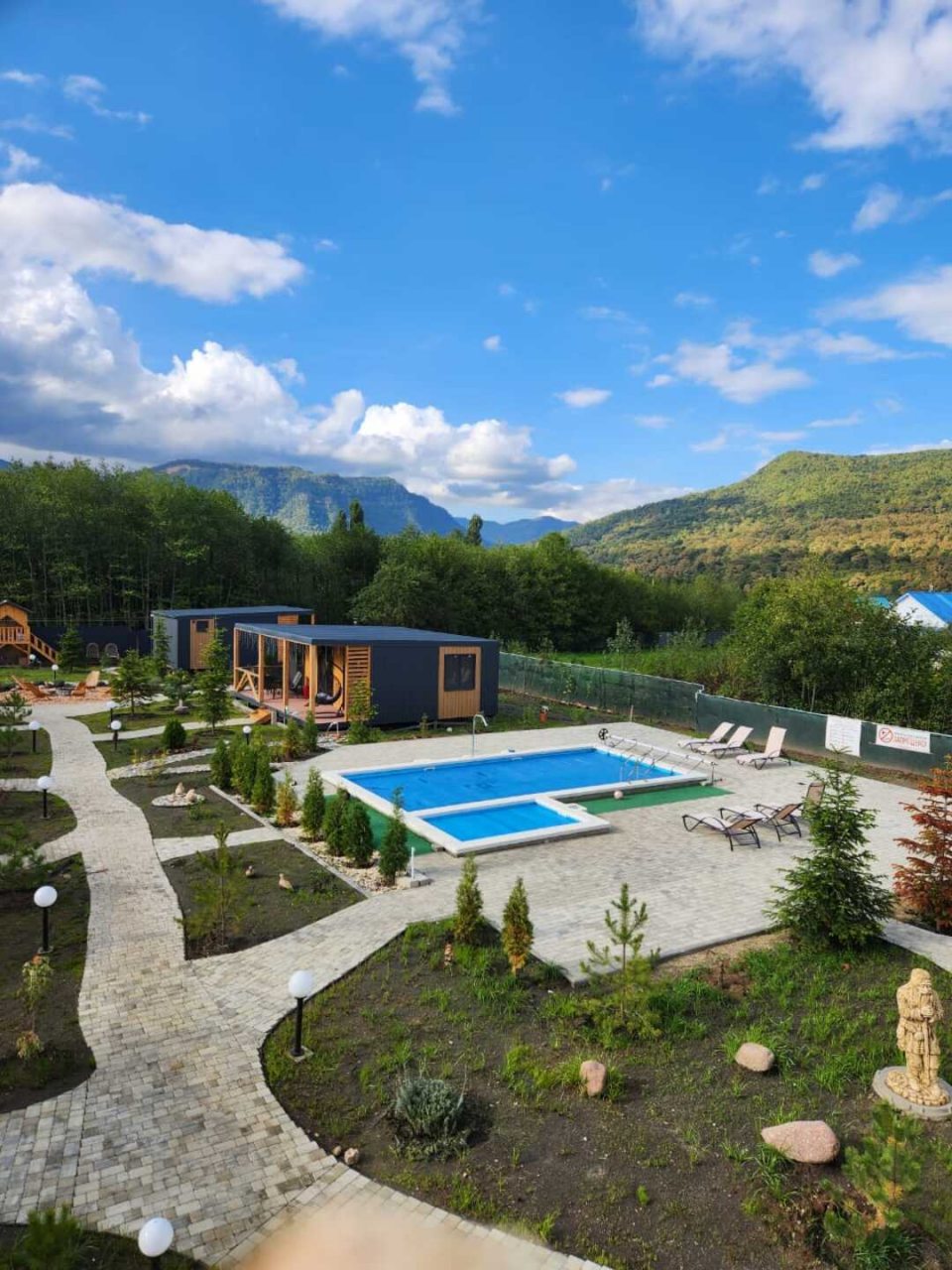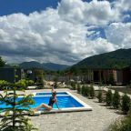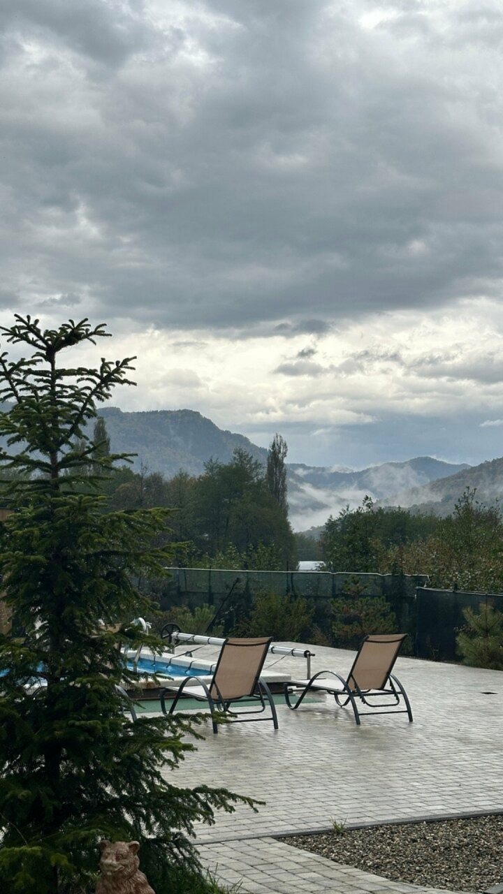 Прекрасное место для спокойного отдыха. На территории находится всего 9 домиков. Шикарный вид на горы. Мангальную зону чистят, дорожки чистые, в домике было чисто, бассейн тёплый, чистят каждый день. Спасибо Ирине за чистоту и порядок.