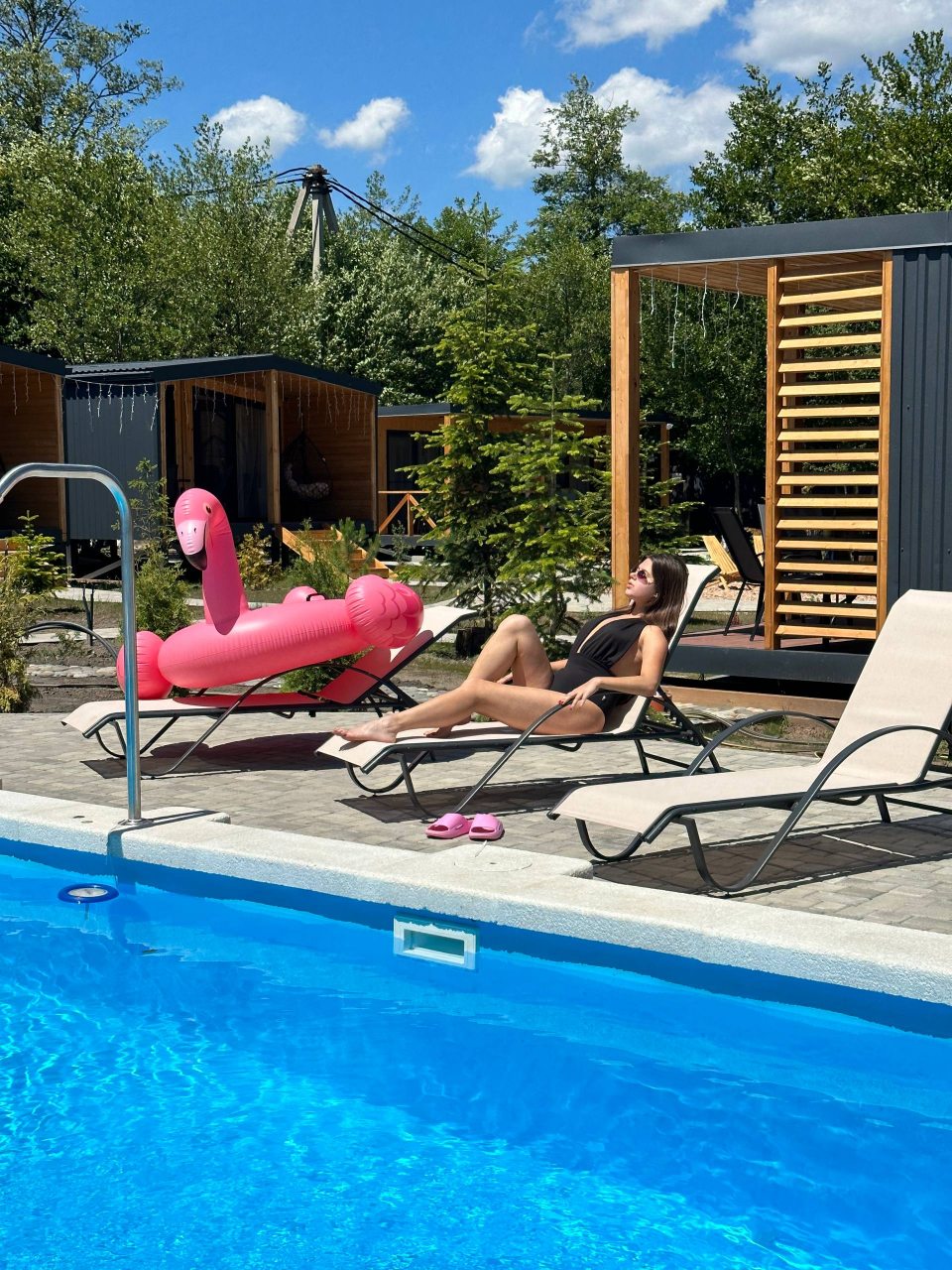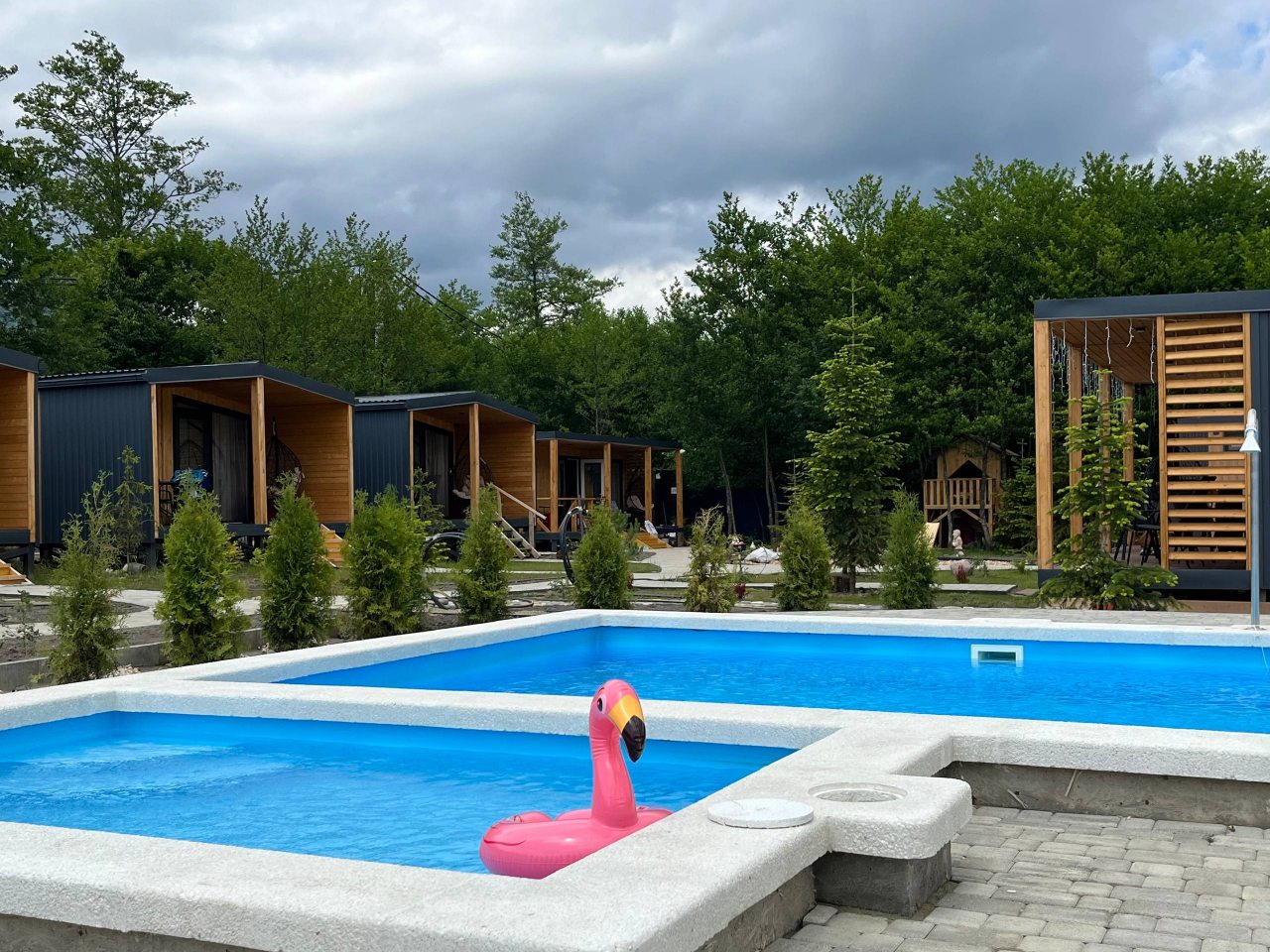 Тихое, спокойное место. Чистый бассейн. Уютные домики с новой сантехникой. Всё необходимое для проживания в домике в наличии. Ухоженная небольшая территория. Уже порекомендовала коллегам на работе