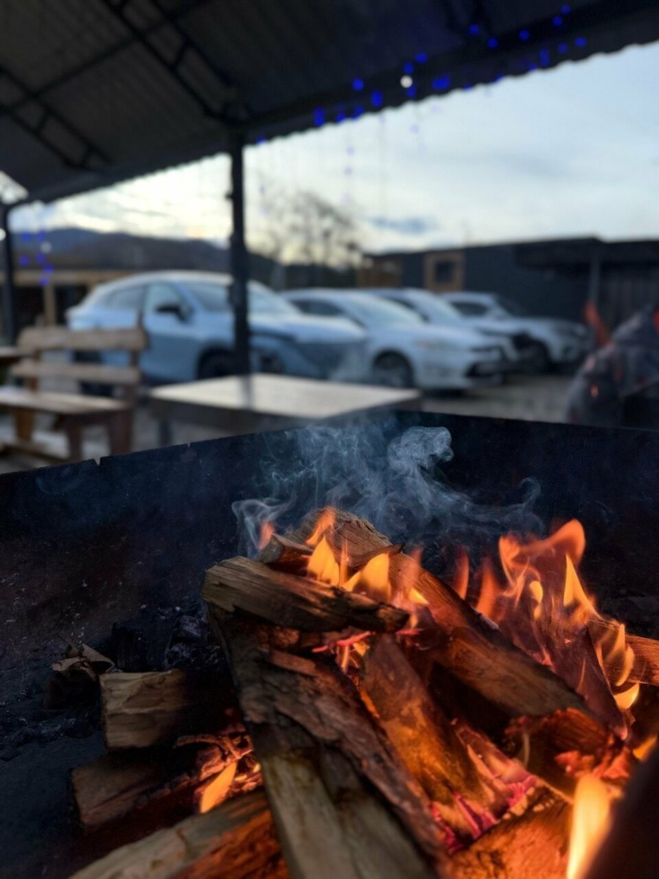 Ещё имеется зона для костра, где в прохладные вечера приятно посидеть и погреться)))