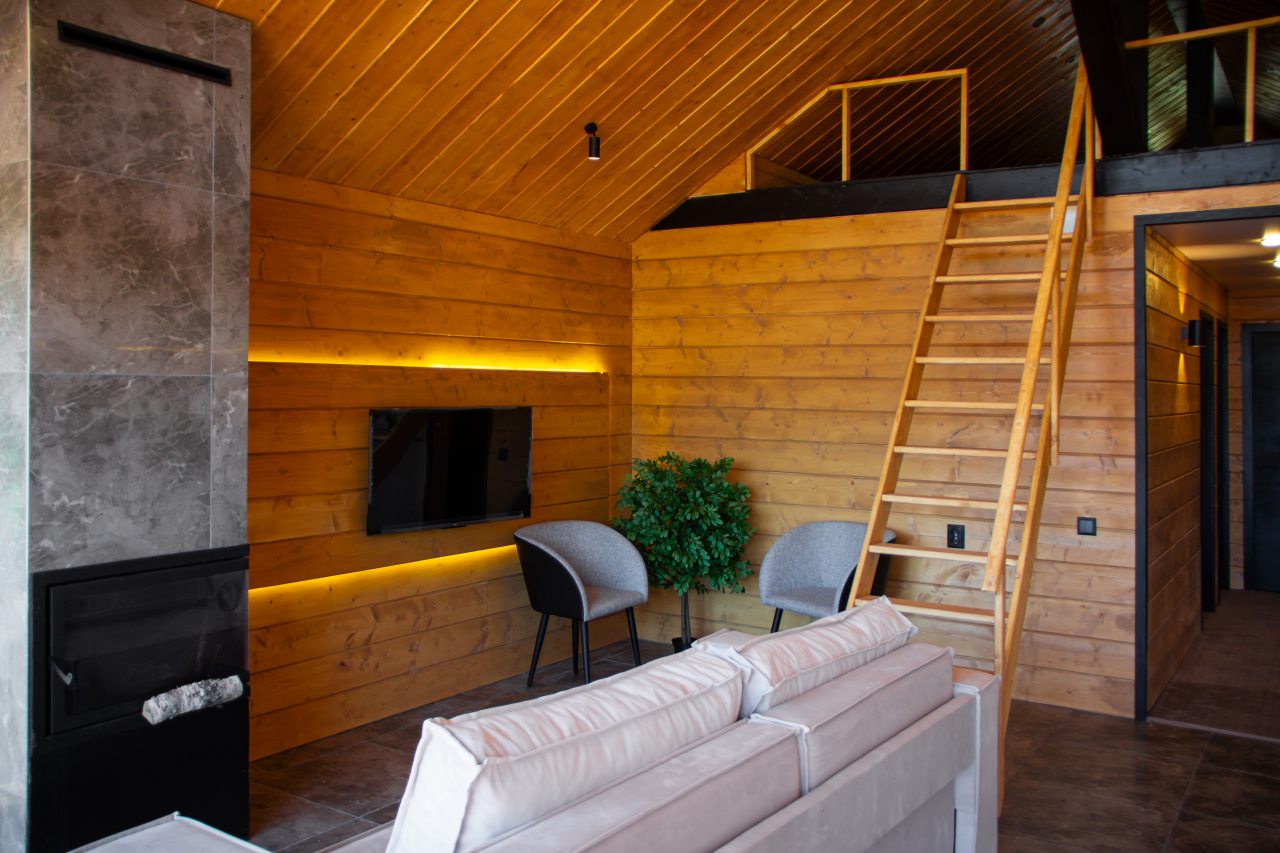 - Коттедж (Дом с двумя спальнями, сауной и камином (4+1))