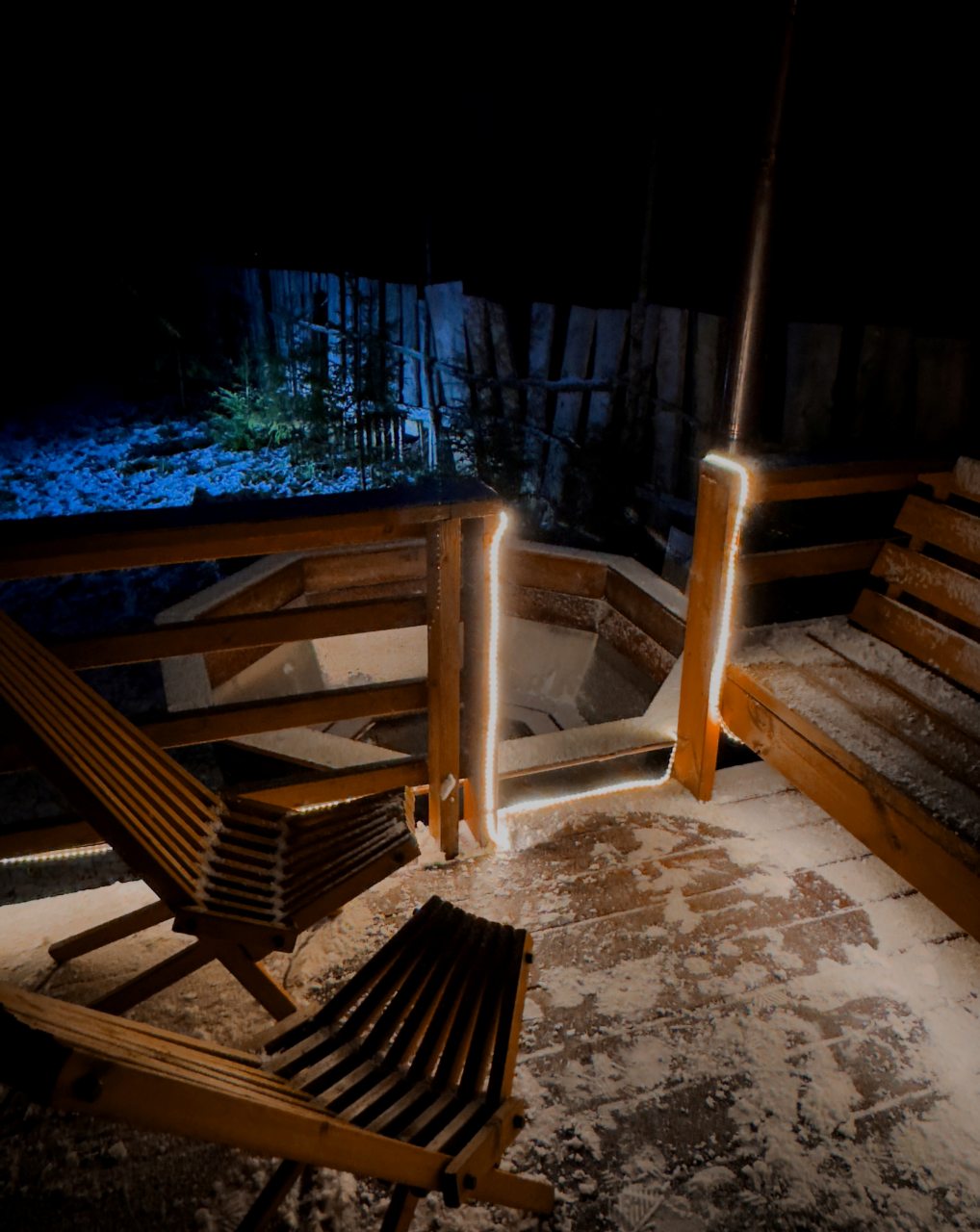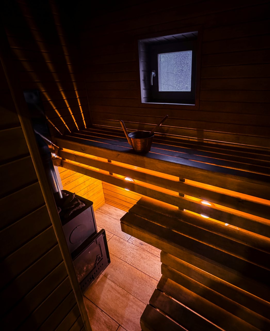 Отдохнуть можно посетив сауну или банный чан. Для досуга предусмотрен Роуп Джампинг, Троллей со сколы, качели для детей, прогулки на аэролодке, снегоходы с санями. Можно арендовать лодку, лыжи. Расстояние до железнодорожной станции — 18,7 км, до аэропорта Бесовец — 160,5 км.