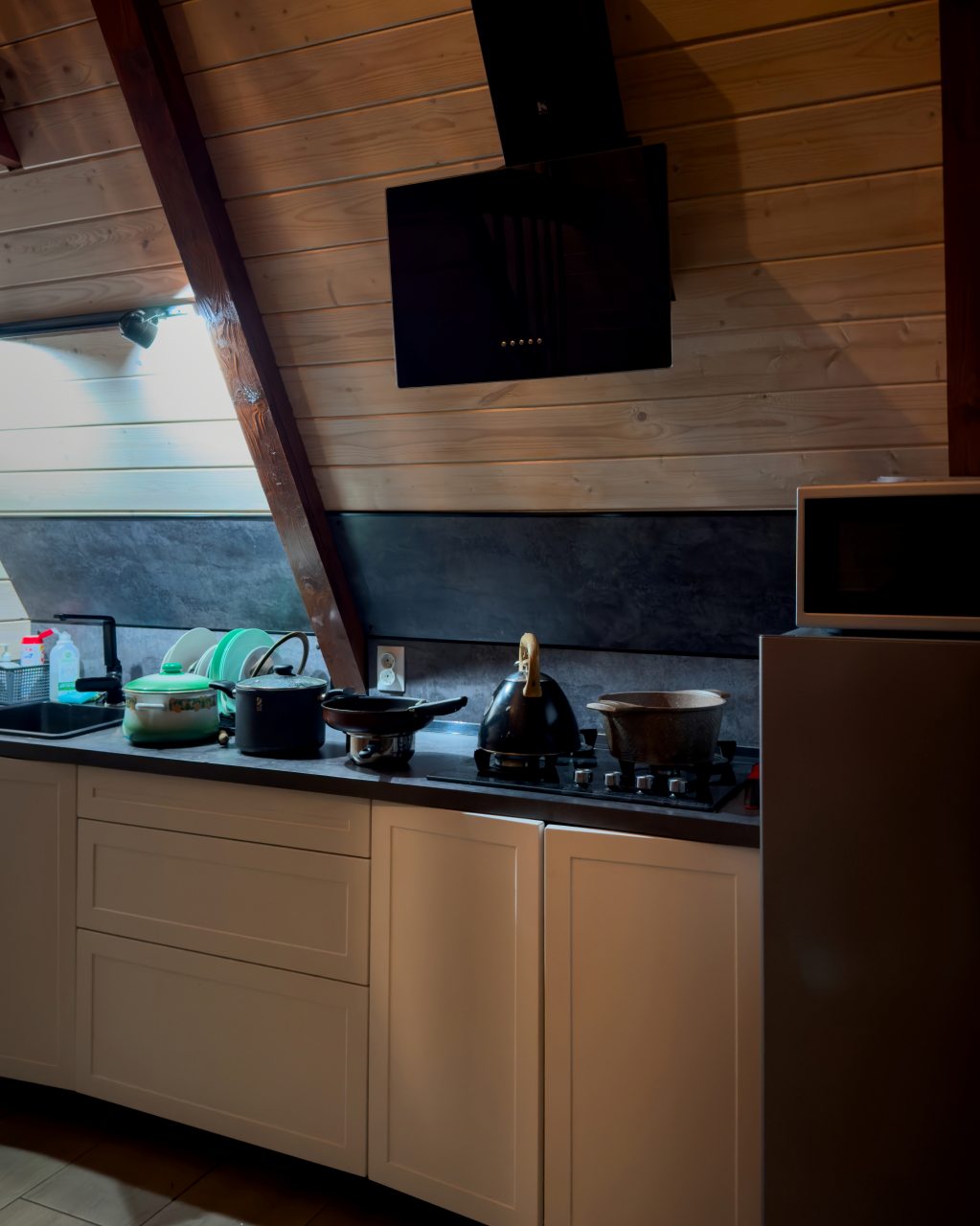 В каждом доме есть кухонная зона с бытовой техникой. Для любителей барбекю оборудованы мангальные зоны.