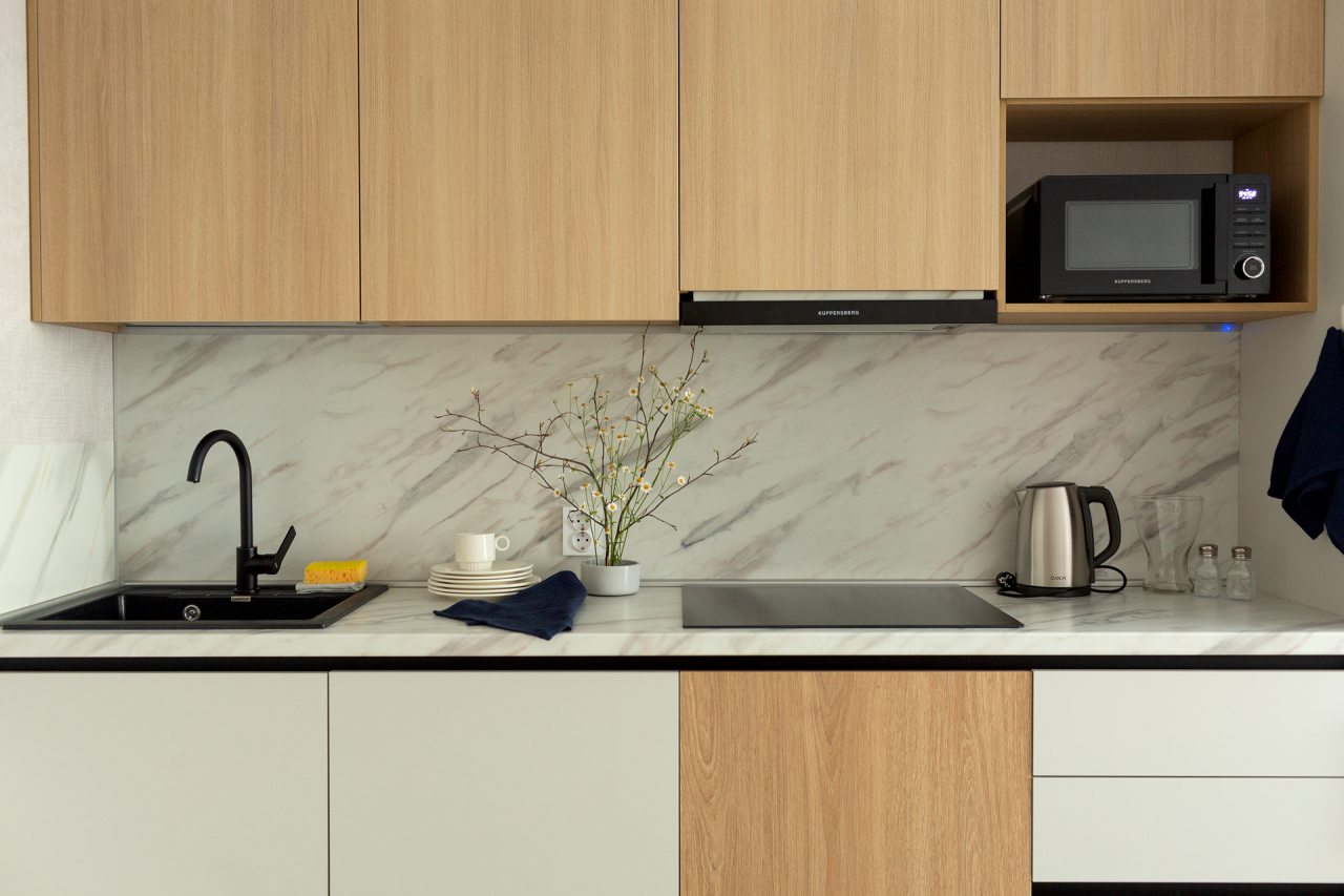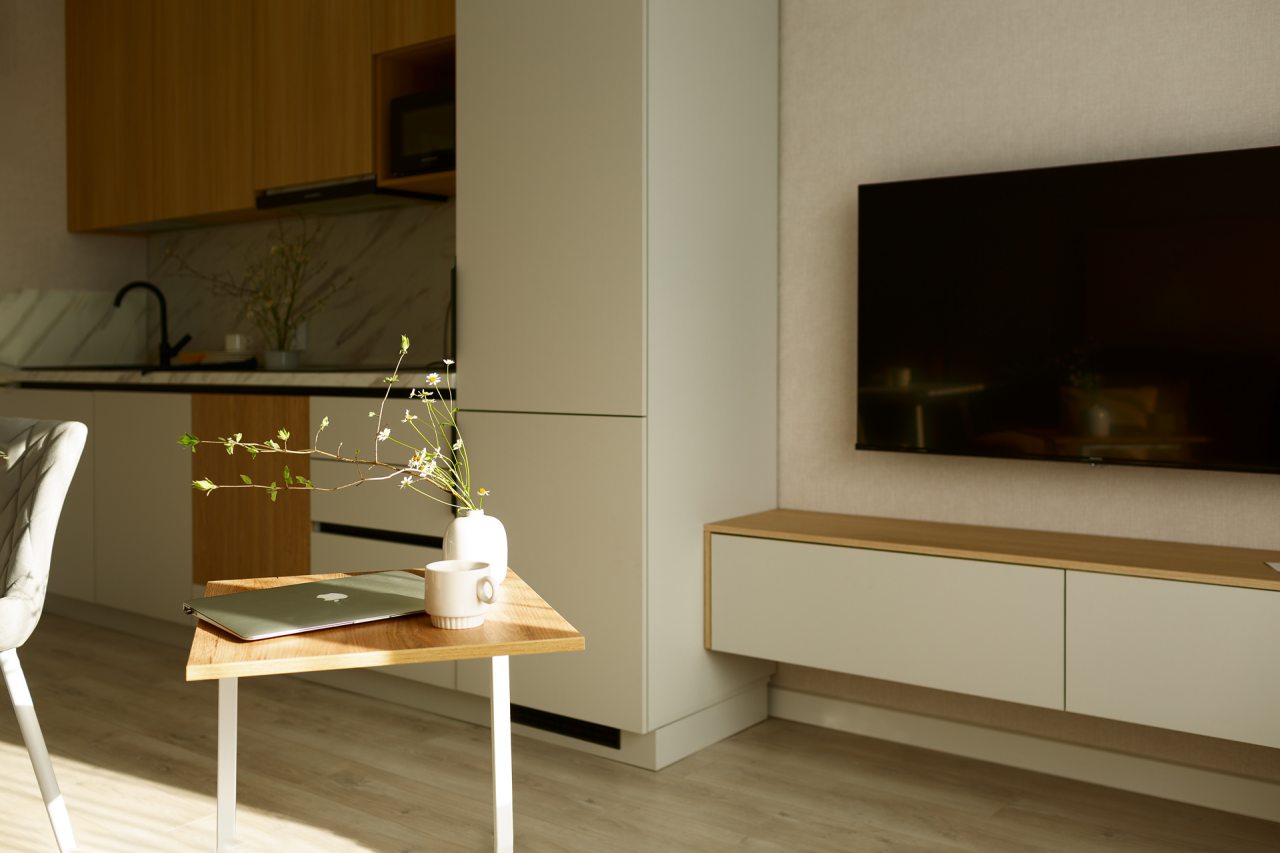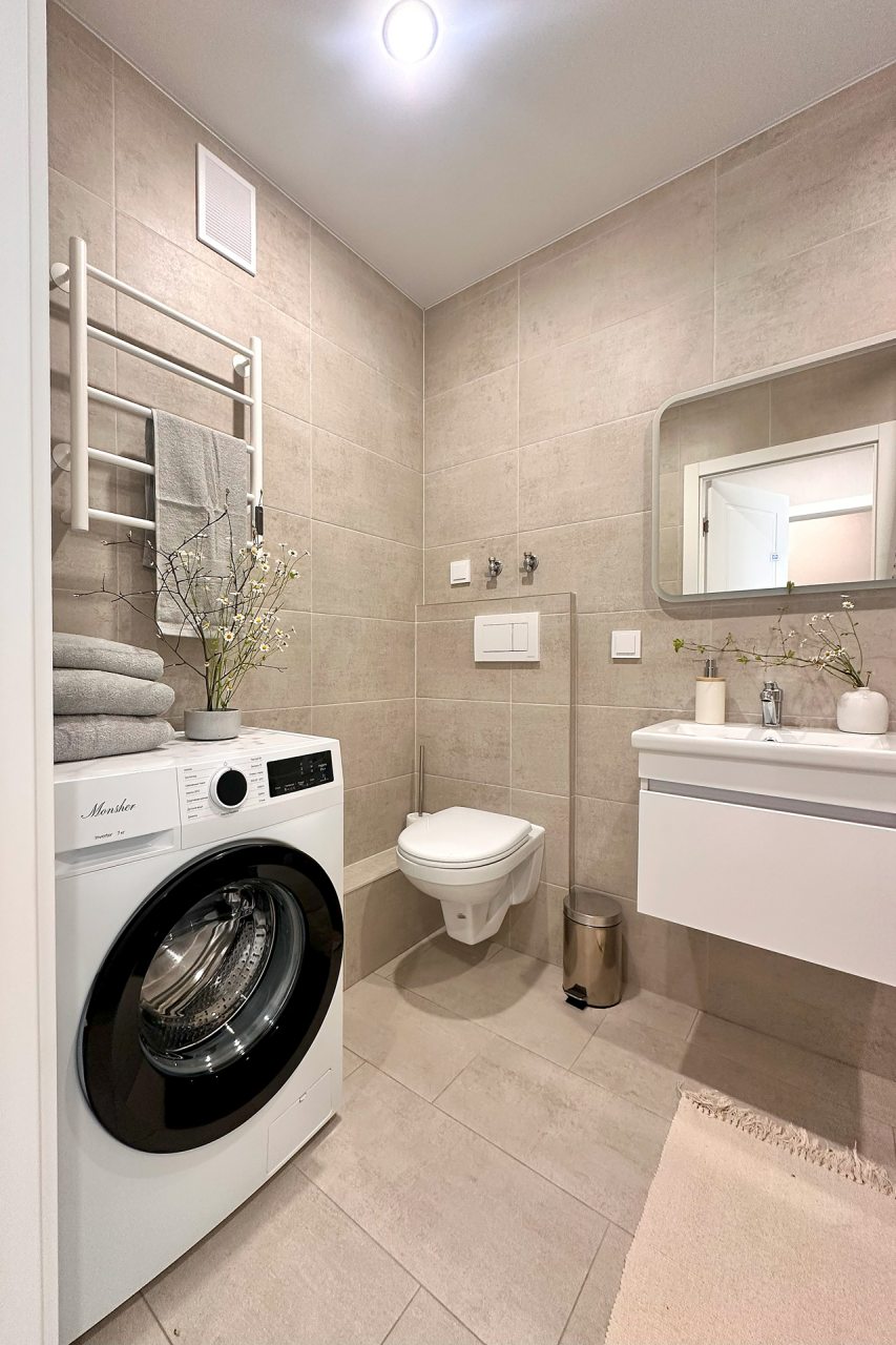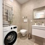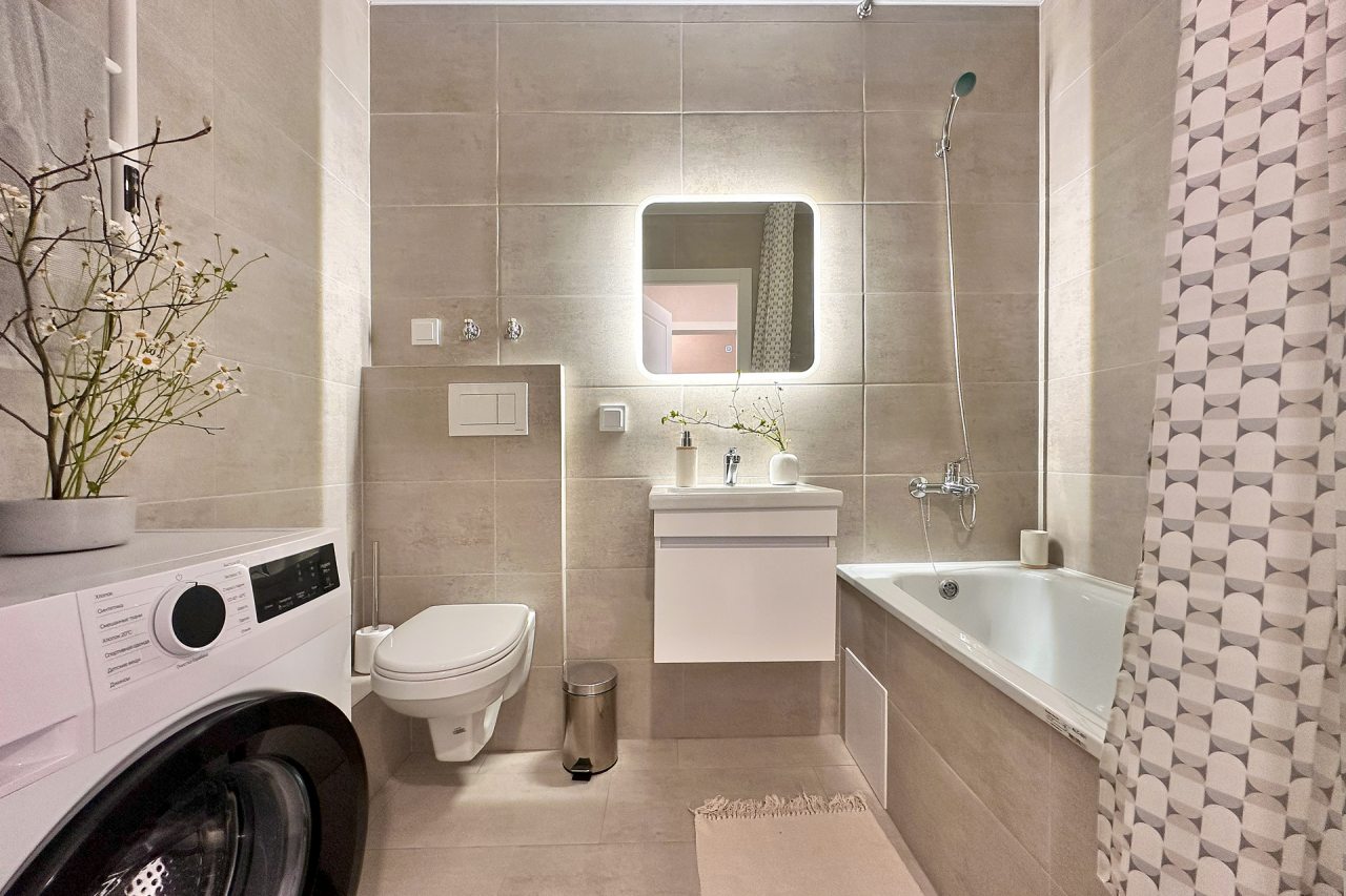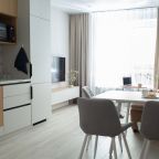 Остались только приятные впечатления от проживания. Порадовала современная техника. Все работало безупречно, от телевизора до стиральной машины. Чувствовала себя как дома. Ванная очень уютная и чистая. Расположение апартаментов - просто супер! Магазины и рестораны расположены рядом, что очень удобно. Не нужно тратить время на дорогу, все под рукой. Спасибо хозяевам за то, что разрешают заселиться с питомцами.