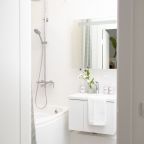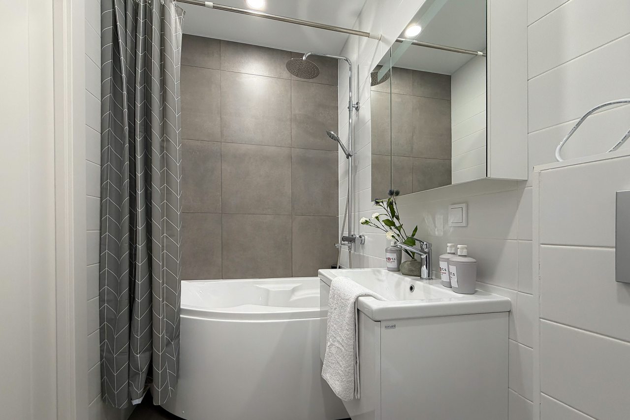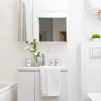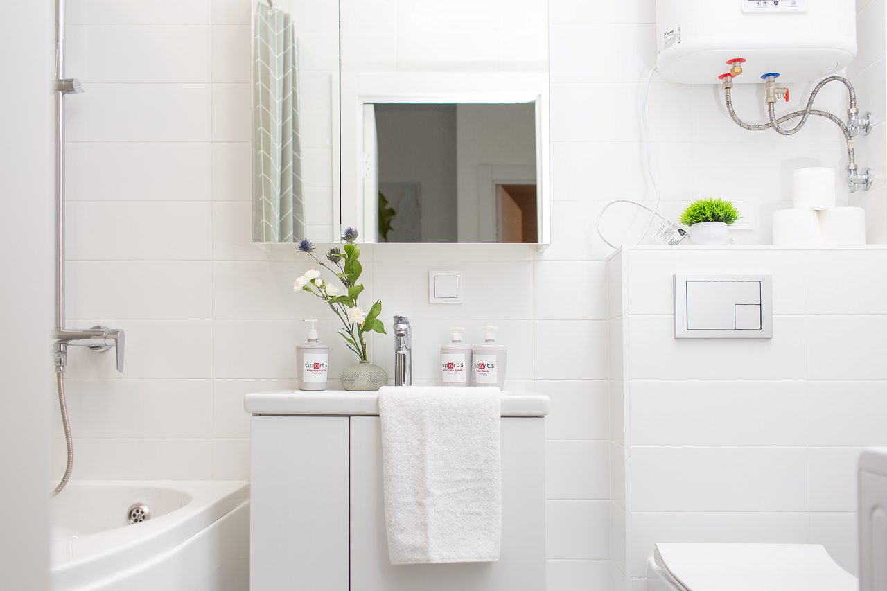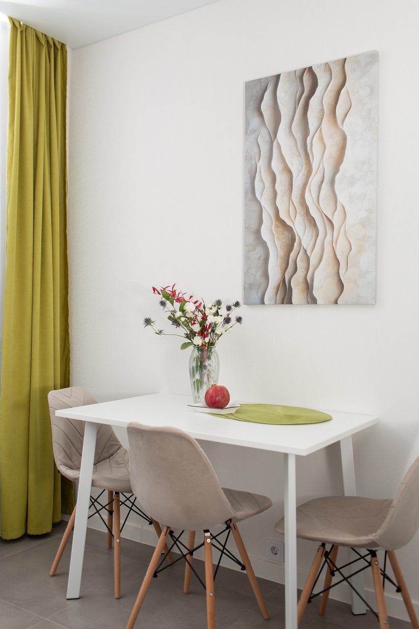 Кухня включает в себя посуду, индукционную плиту, холодильник, чайник, СВЧ, уютную обеденную зону, чтобы вы в любой момент могли порадовать себя приготовлением любимых блюд.
