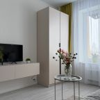 На площади в 32 квадратных метра вас ожидает большая и удобная двуспальная кровать, мягкий диван напротив ЖК-телевизора, просторная лоджия, различная мебель для хранения вещей, санузел со стандартным набором сантехники.