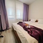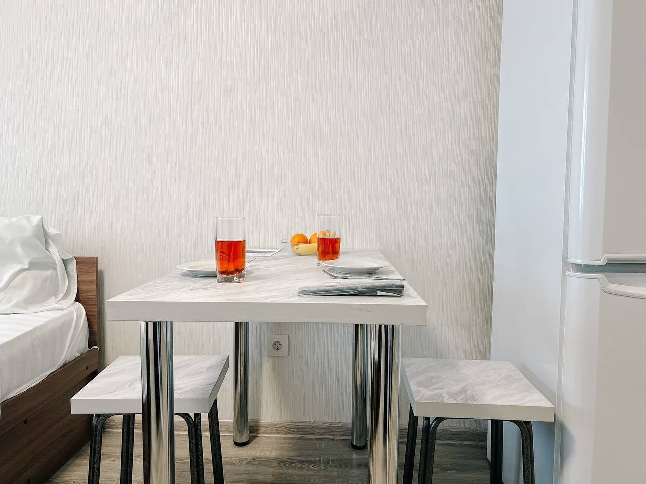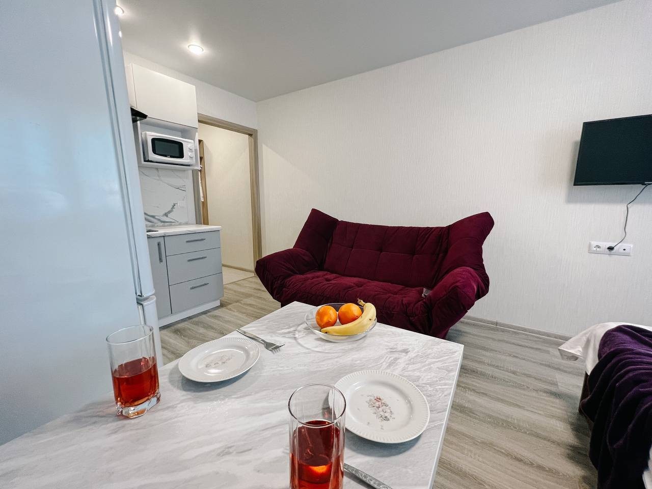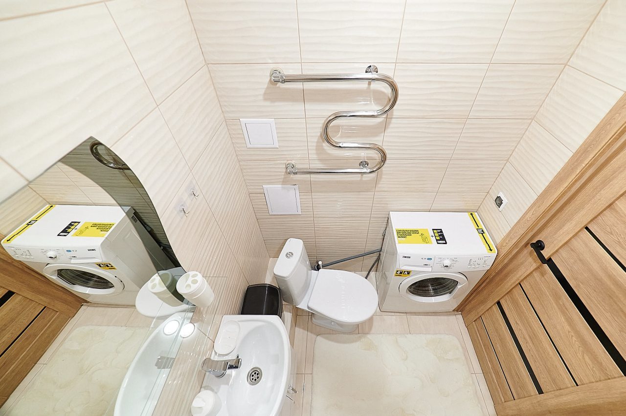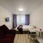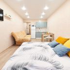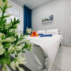 К размещению представлены несколько комфортабельных апартаментов в современном стиле. Они укомплектованы мебелью и техникой: двуспальная кровать, телевизор для просмотров любимых фильмов, мягкий диван, обеденный стол. В санузле установлена стиральная машинка и имеются средства гигиены.