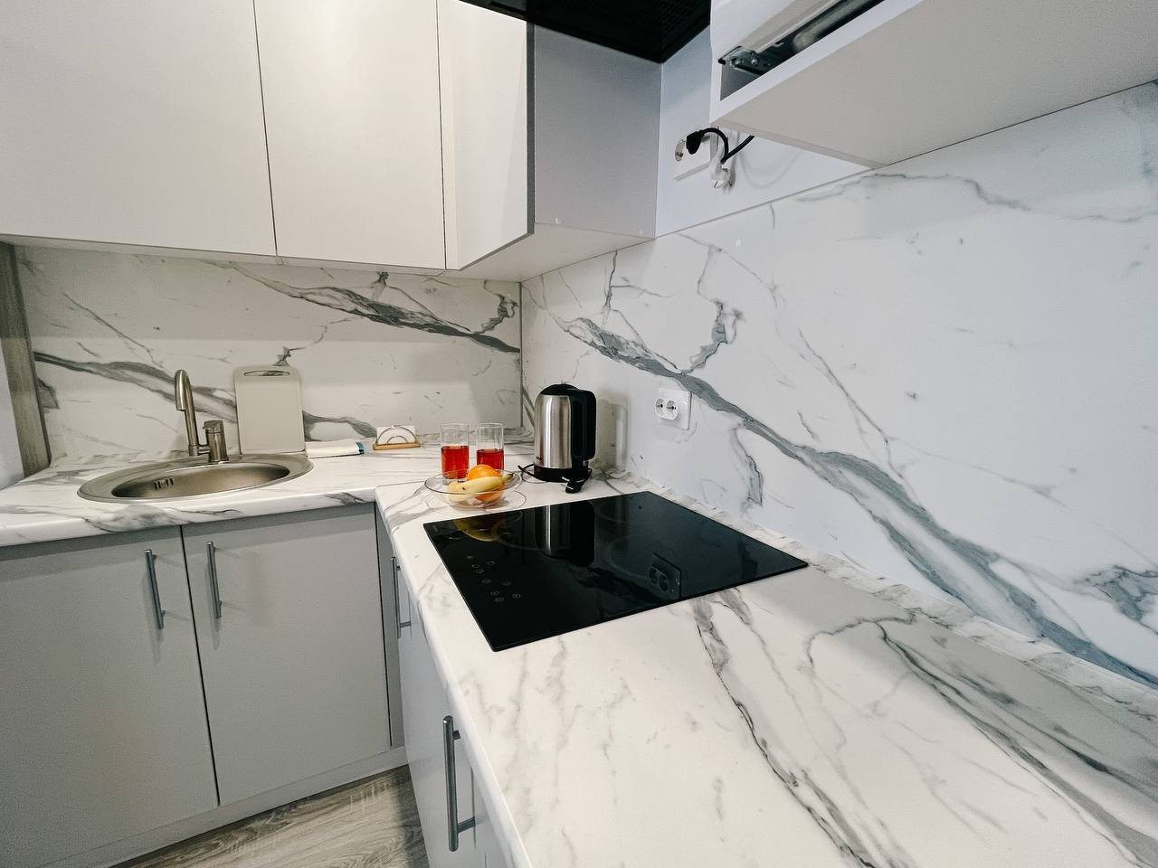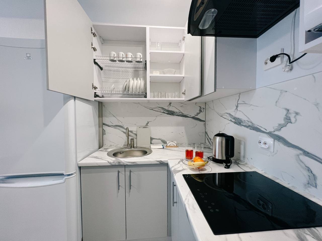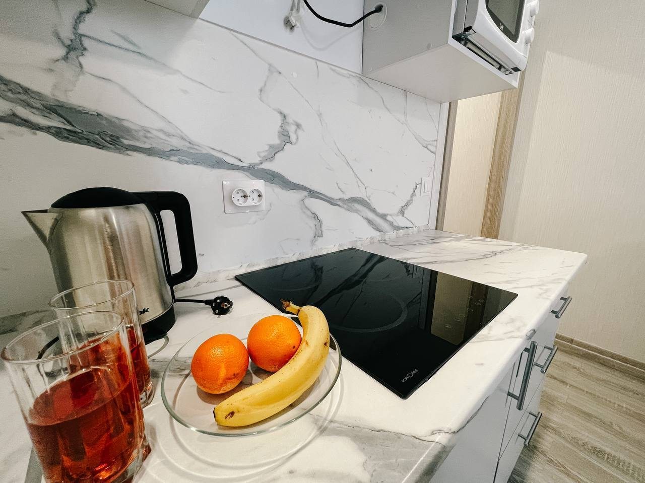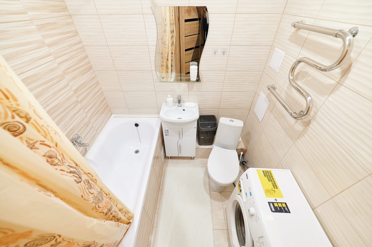 К размещению представлены несколько комфортабельных апартаментов в современном стиле. Они укомплектованы мебелью и техникой: двуспальная кровать, телевизор для просмотров любимых фильмов, мягкий диван, обеденный стол. В санузле установлена стиральная машинка и имеются средства гигиены.