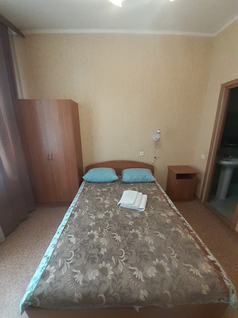 Хорошая гостиница чтобы остановиться на 1-2 дня. Всё просто, без лишних вопросов. Номера на втором этаже. Чисто. Скромно. В санузле просторно. В наличии мыло, шампунь, гель. Фена нет. Расположение самого здания удачное - рядом ТЦ, сквер, спорткомплекс, остановки транспорта. Есть столовая, где можно позавтракать или пообедать. Имеется парковка.