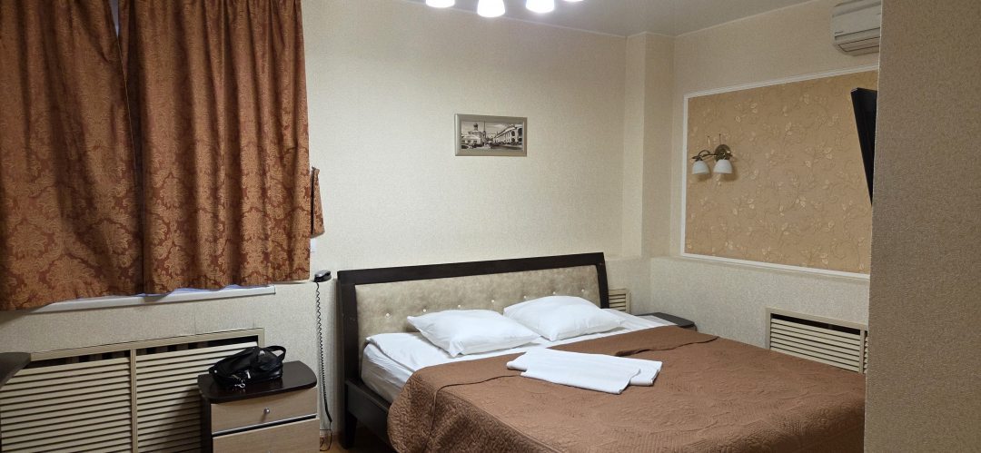 Своя закрытая парковка один из главных критериев для путешественника на мотоцикле. Милейший администратор встретил меня и позволил занести вещи короткой дорогой. Номер большой, но простой, без изысков, в приемлемом состоянии, разве что бельё порядком изношенное и матрац подуставший. Санузел общий, всё работает, грязи не видно приемлемо.