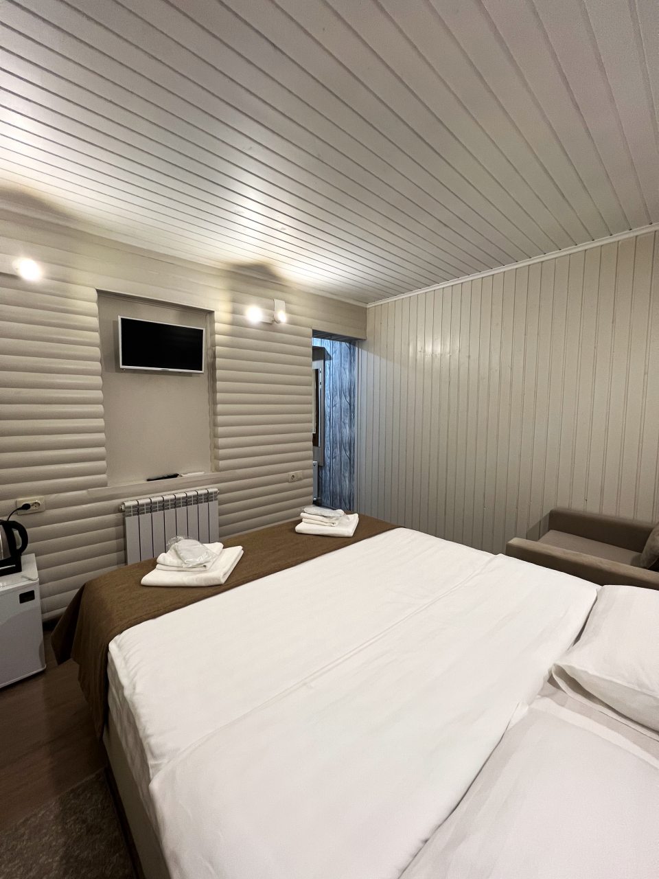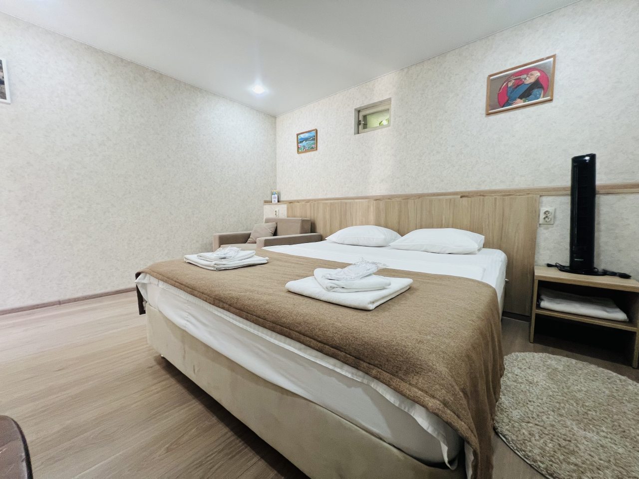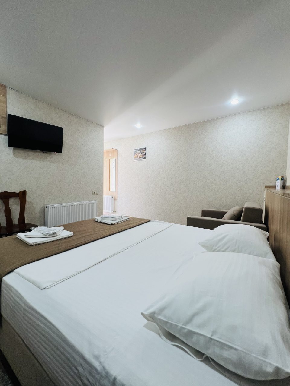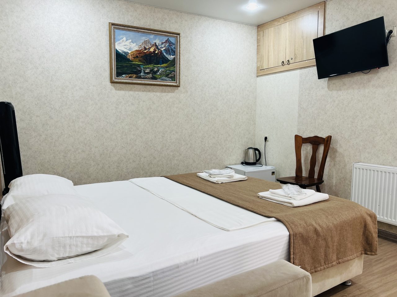 В наличии 6 номеров разнообразных категорий. В каждом предусмотрена качественная мебель и техника, в том числе удобные кровати, Wi-Fi, кондиционер, комплект полотенец, а также собственный санузел с душевой и гигиеническими средствами. Среди дополнительных услуг, которые предоставляются бесплатно при согласовании с администрацией, — стирка и глажка вещей.