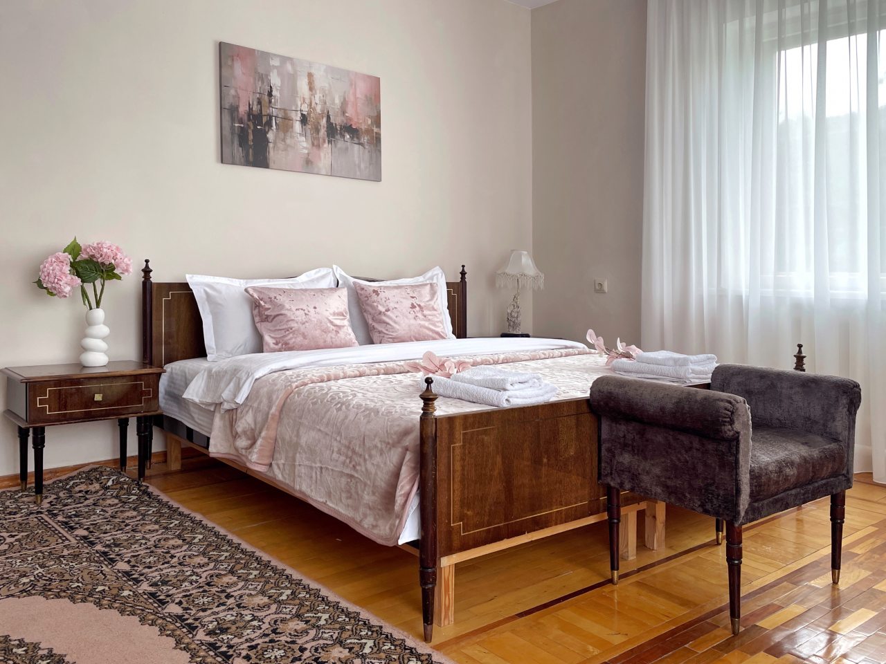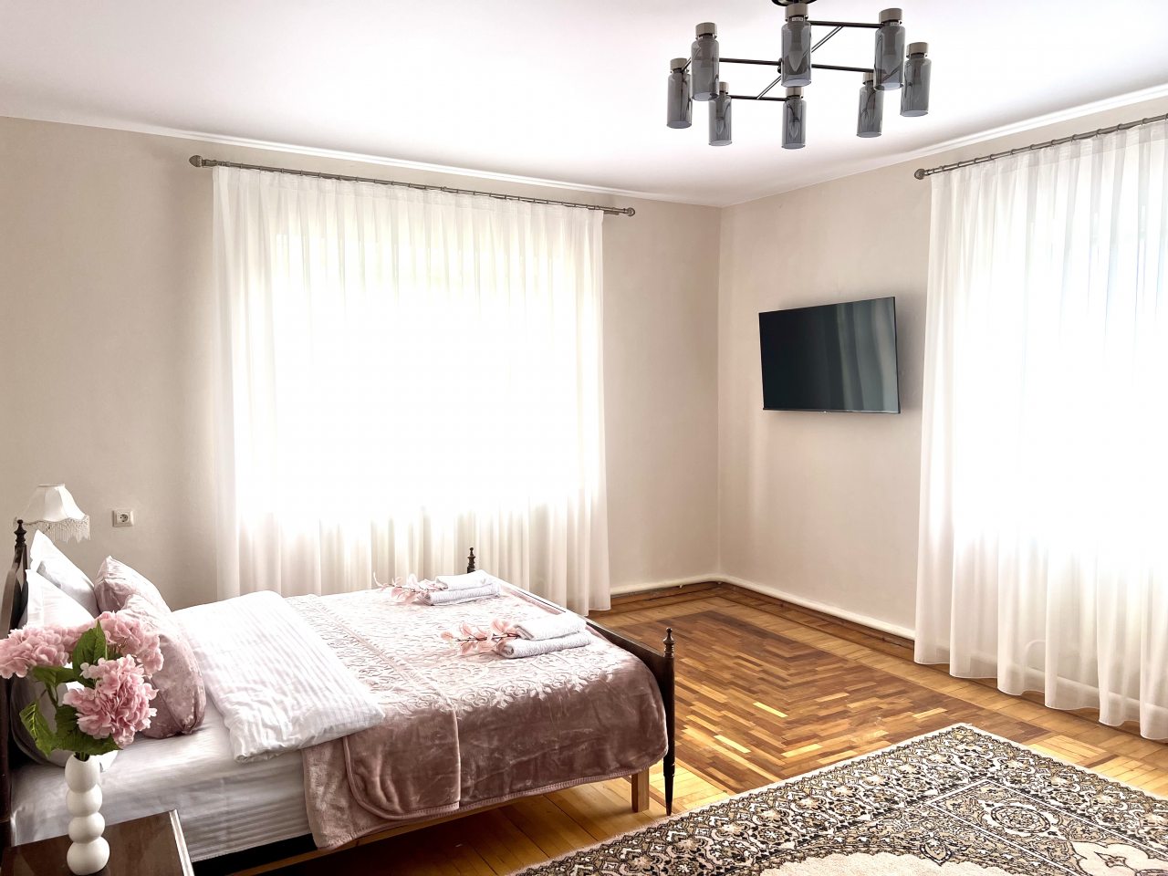 Коттедж «Шикарный дом в районе Собора» расположен в Кисловодске. Он отлично подходит для размещения больших компаний.
