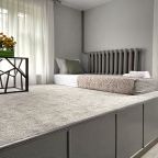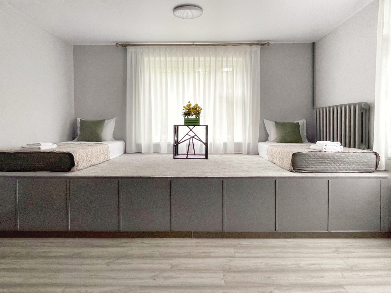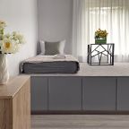 Из оснащения представлено 10 спальных мест, шкаф для одежды, кондиционер для регулирования температуры. Стиральная машина установлена в ванной комнате, там же предложен к пользованию набор полотенец. Есть телевизор и беспроводная сеть Wi-Fi.
