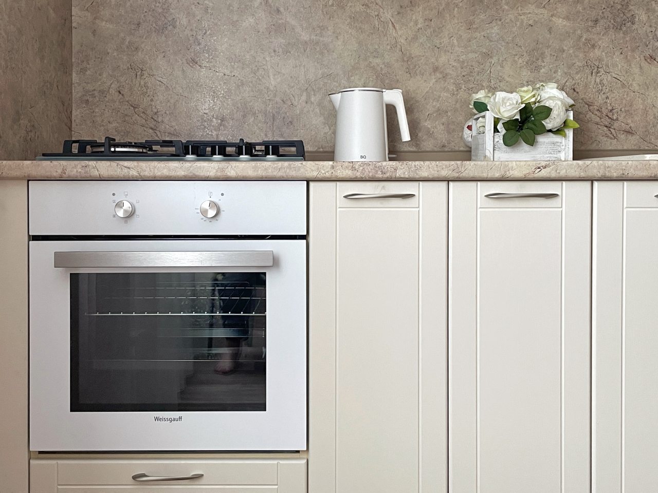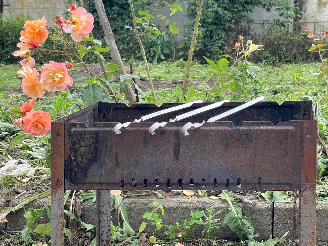 Готовить можно самостоятельно. Для этого на кухне оборудованы СВЧ-печь, плита и духовой шкаф, чайник и холодильник. На улице есть мангал.
