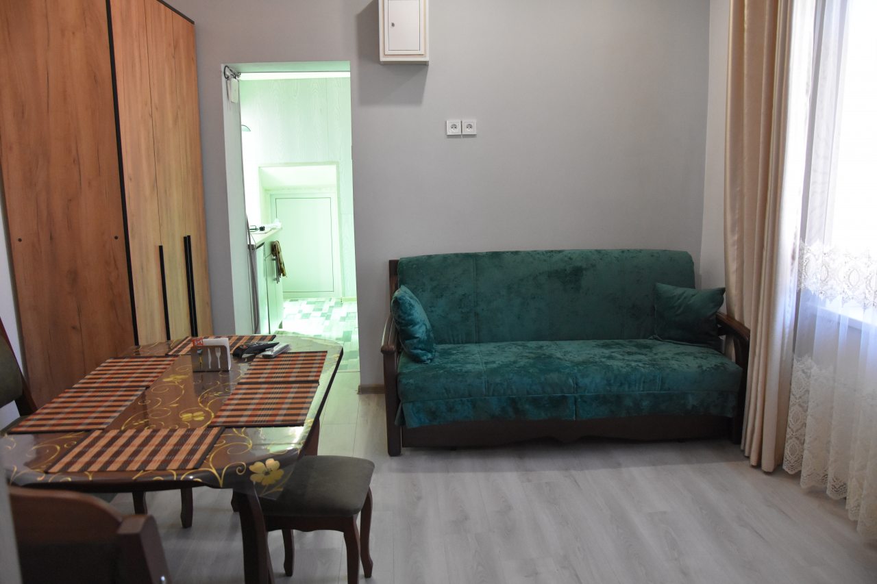 Хорошее расположение - недалеко от знаменитого Кисловодского парка, в историческом центре города. Тихое место, двери выходят не на улицу, а в тихий дворик, вход в который - по коду. Заселение удобное, бесконтактное, очень доброжелательный администратор Юлия. Все запросы оперативно выполняются. В номере есть все необходимое для жизни - мини-кухня, посуда, холодильник, кондиционер. Хорошее соотношение цена-качество.