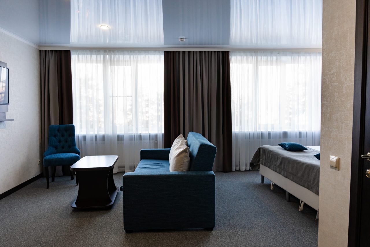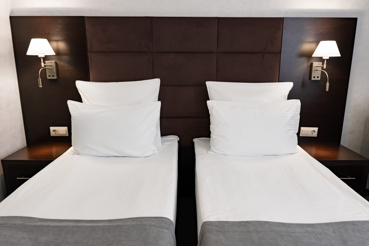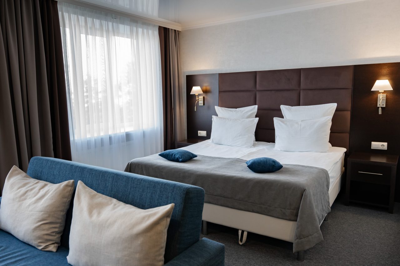 В номерах установлены комфортные ортопедические матрасы, которые обеспечивают прекрасный сон. Так же в номерах есть телефон, сейф и фен в своей ванной комнате.