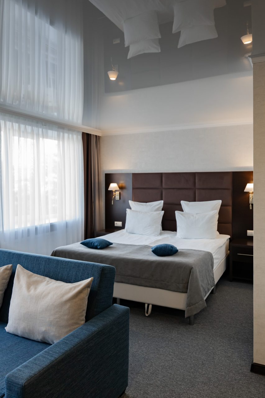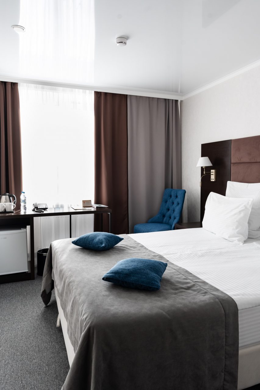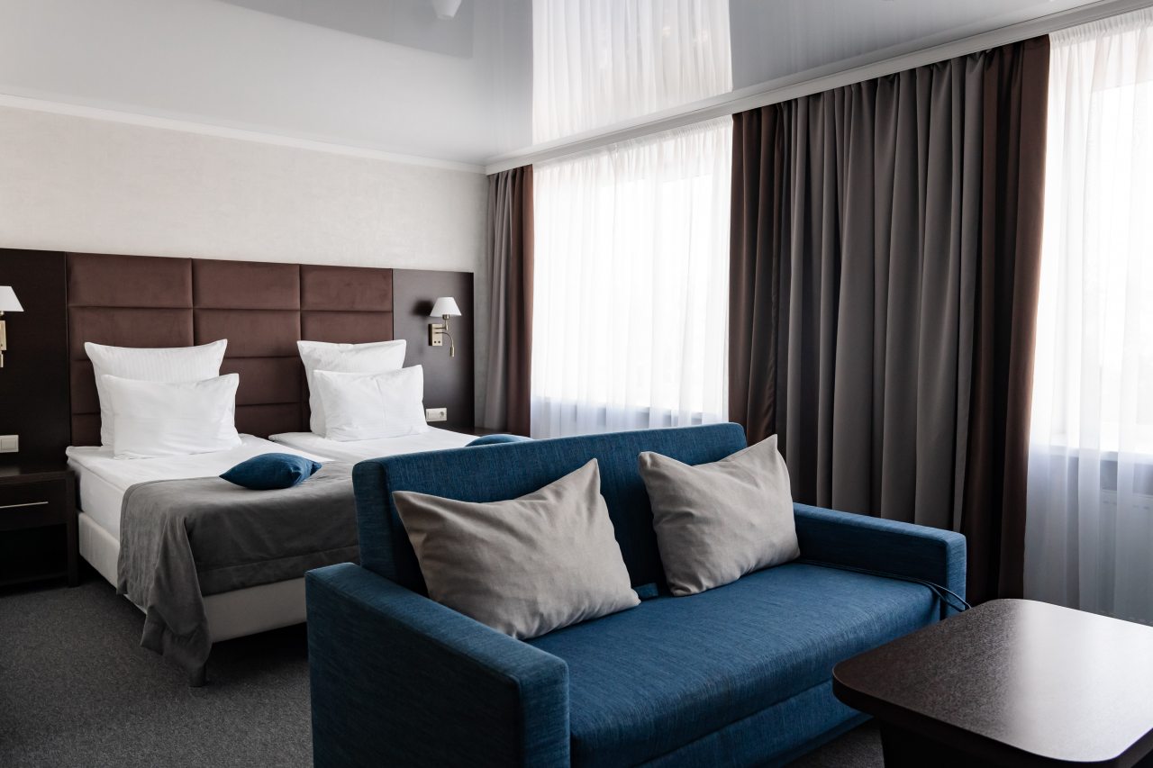 В номерах установлены комфортные ортопедические матрасы, которые обеспечивают прекрасный сон. Так же в номерах есть телефон, сейф и фен в своей ванной комнате.