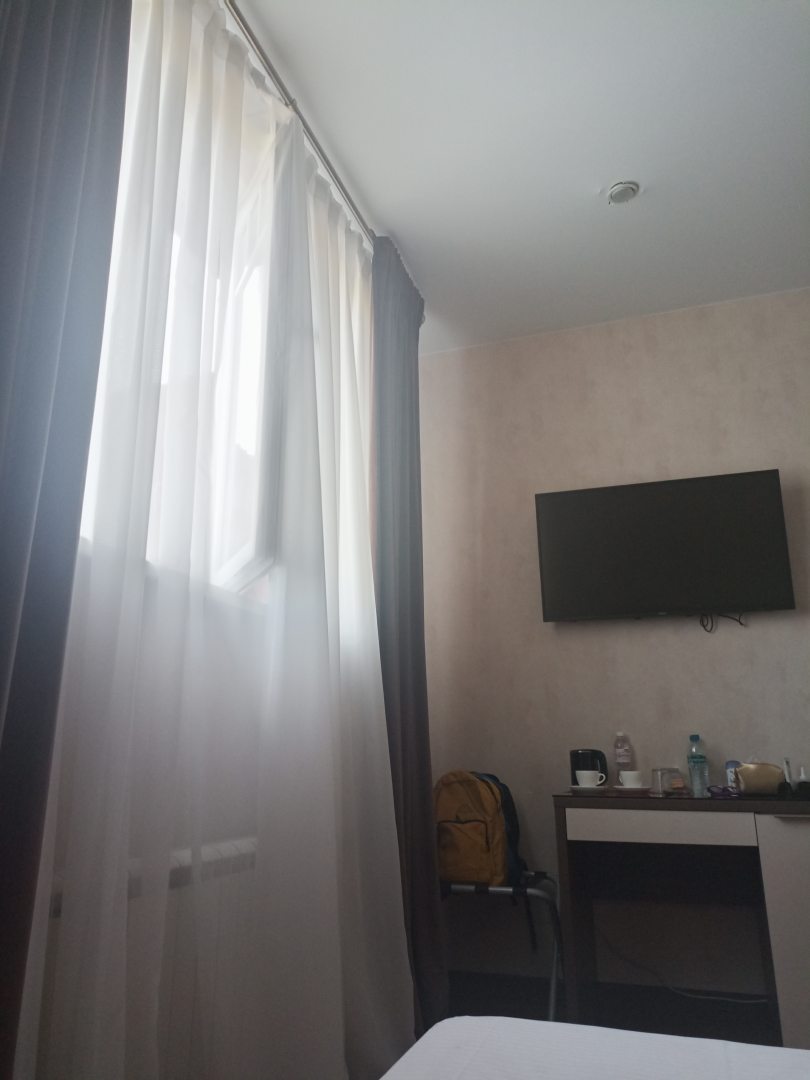 Гостиница очень приятная, место расположение тихое. Персонал вежливый. В номерах светло, уютно и чисто. Есть все что нужно для проживания. Мы жили почти неделю и всегда у нас выносили мусор, каждый день выдавались туалетные принадлежности. Раз в три дня была смена белья и полотенец. Гостиница находится не далеко от центра. При желании можно дойти пешком. Хорошо развит транспорт и цена приемлемая. При гостинице есть маленький ресторанчик, который является местной достопримечательностью. Особая благодарность администратору Оксане. В общем нам все понравилось. Спасибо за чудесный отдых.