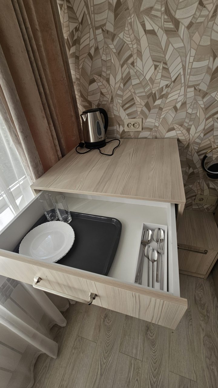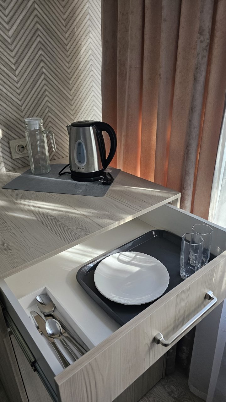 На кухне есть микроволновая печь, электрический чайник. В пешей доступности продуктовые магазины.