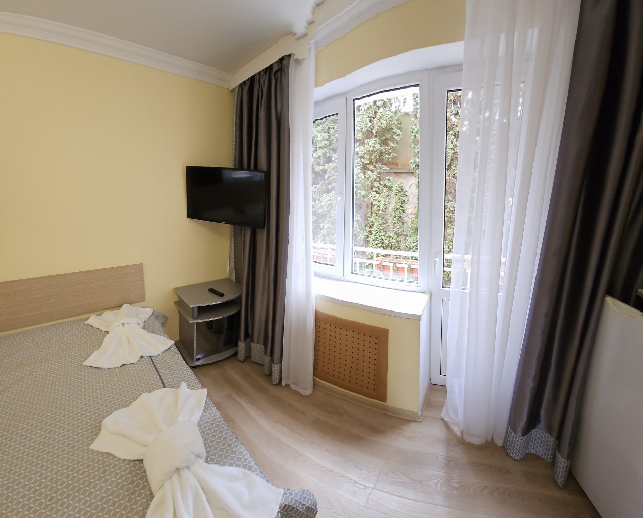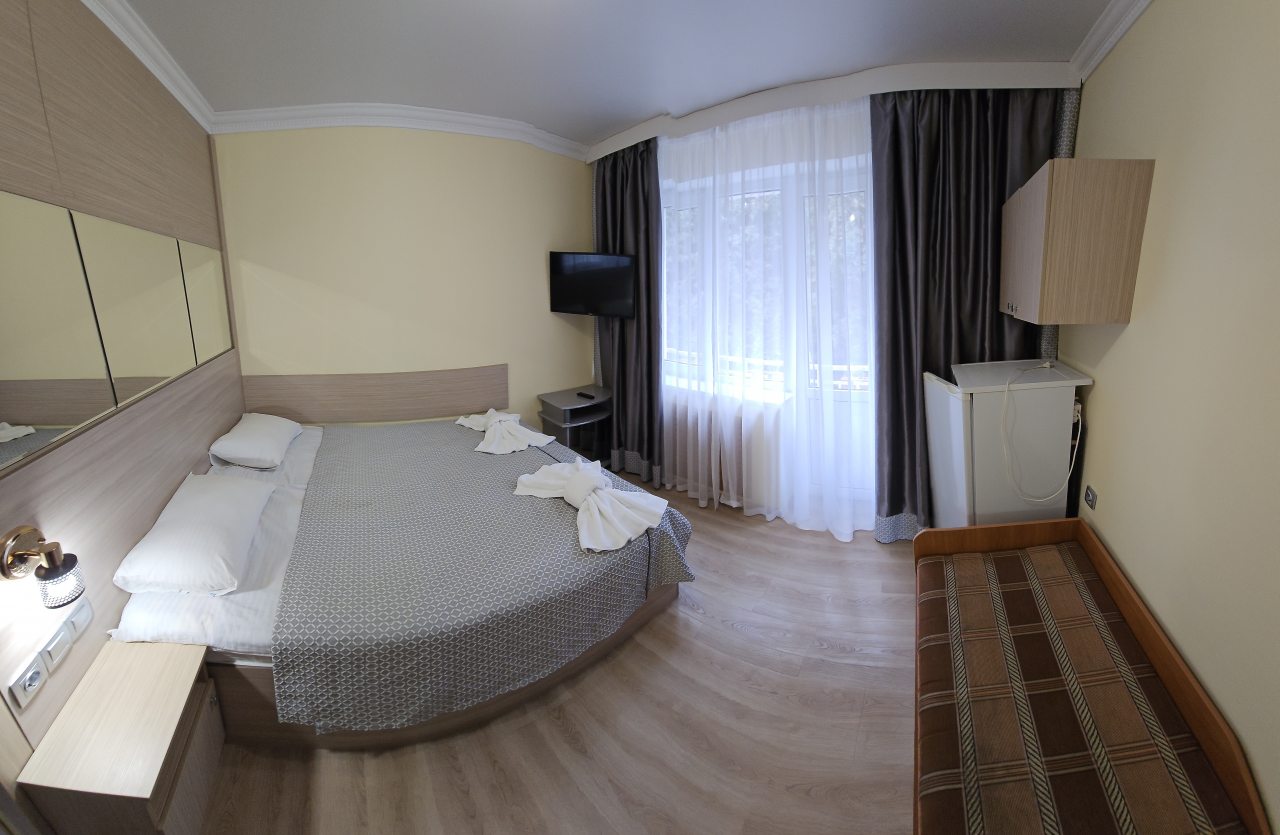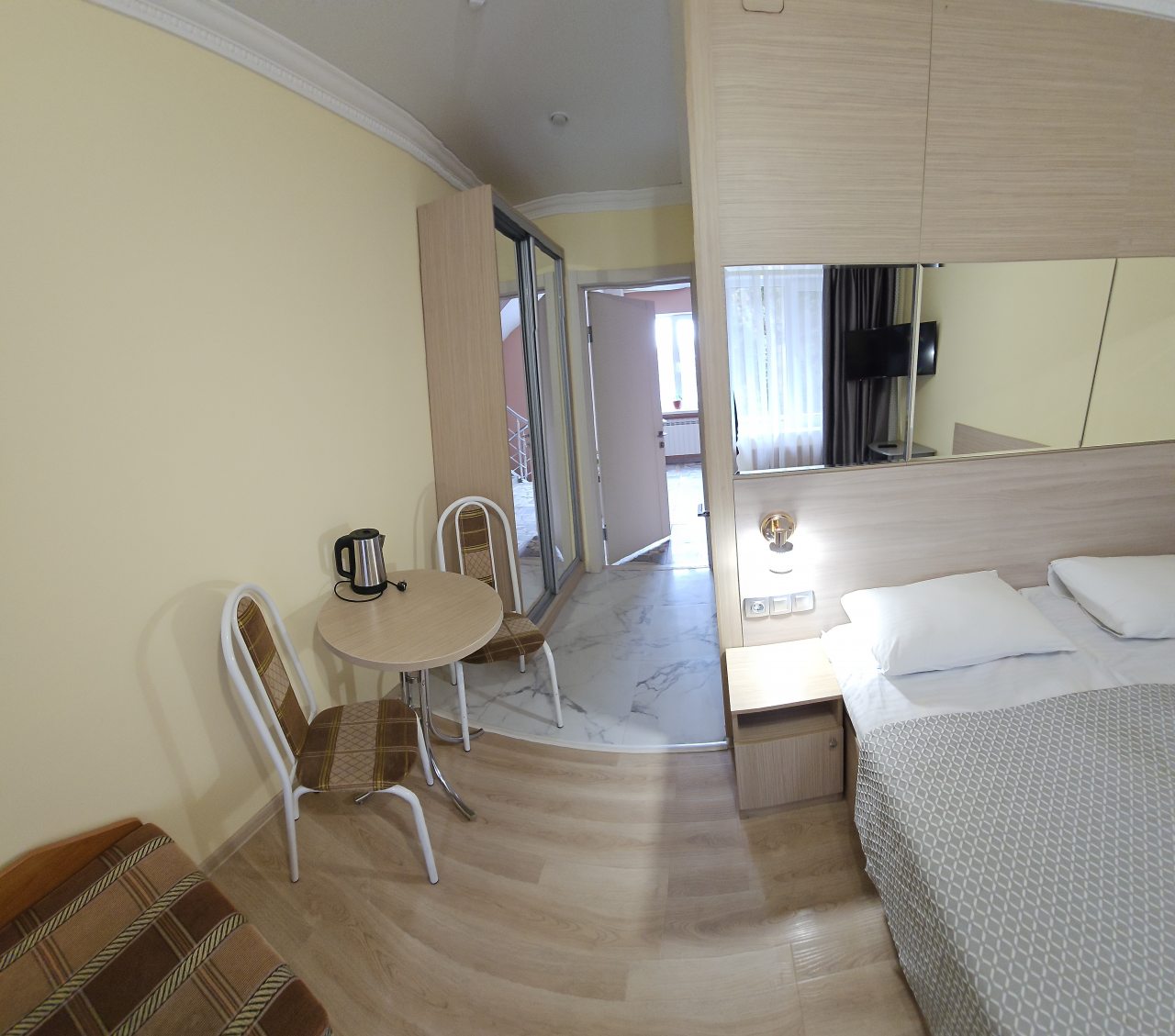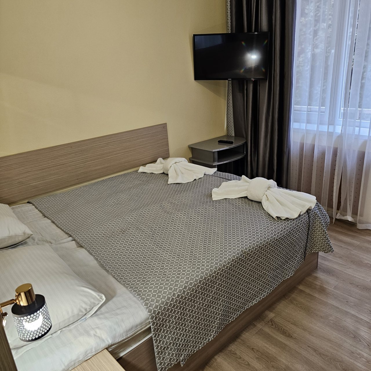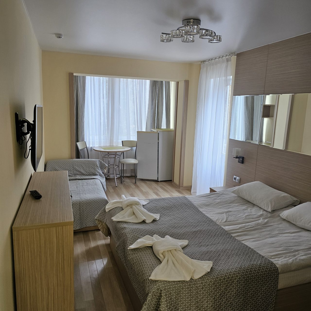 15 февраля заехали с дочерью в отель. Я бронировала 2-хместный номер с удобствами на этаже. По приезду оказалось, что в нашем номере идёт ремонт. Нам предложили другой номер с удобствами в нём. Цена за проживание осталась прежней. В отеле чисто и уютно. В номере удобная кровать с прикроватными тумбочками, шкаф-купе для верхней одежды и обуви, телевизор, столик и стулья, чайник, посуда, холодильник. Функциональные источники освещения. Удобный и чистый санузел. Вобщем, есть всё необходимое для комфортного отдыха. Отдельное спасибо администраторам. Нам предложили разные экскурсии, чем мы и воспользовались. Очень удобно, что экскурсионный автобус нас забирал от отеля.