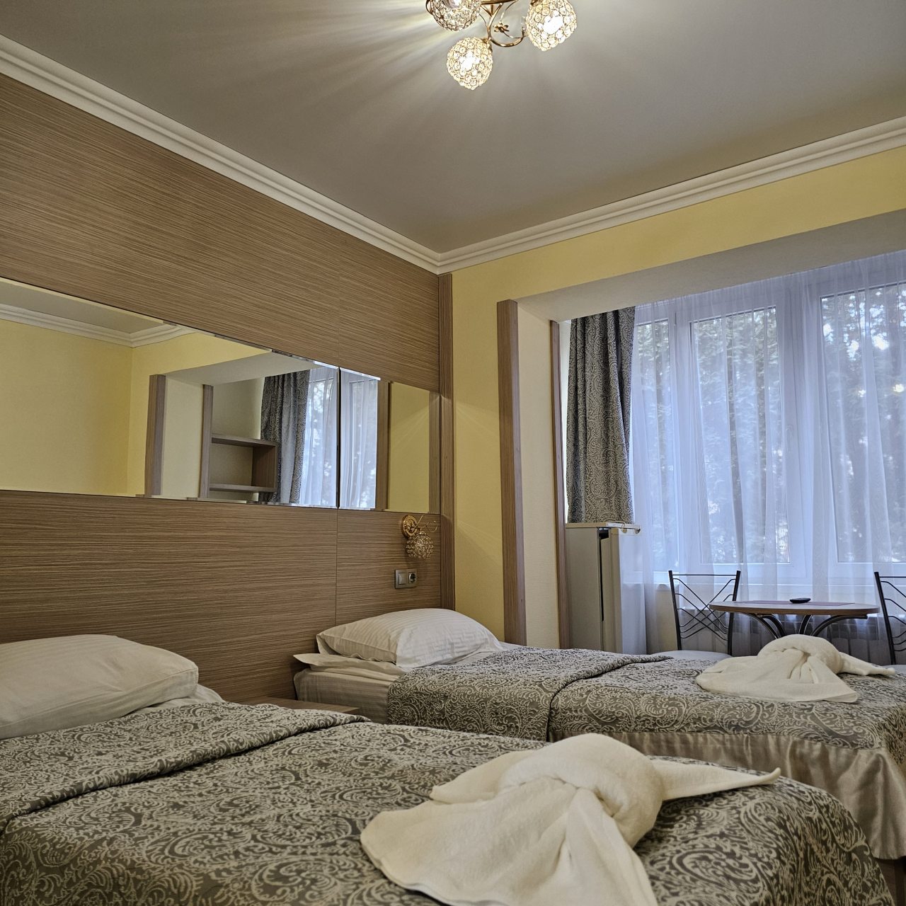 Очень понравился пансионат, в комнатах есть все необходимое, удобные кровати, отличный душ. В пансионате есть очень уютная кухня, услуги стирки одежды. До парка не более 15 минут ходьбы. Есть парковка для машин под навесом. И главное - очень приветливый персонал, спасибо им большое за прекрасный отдых.