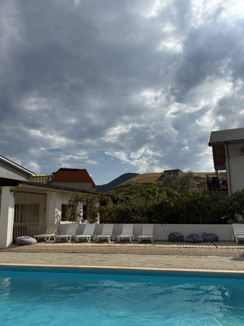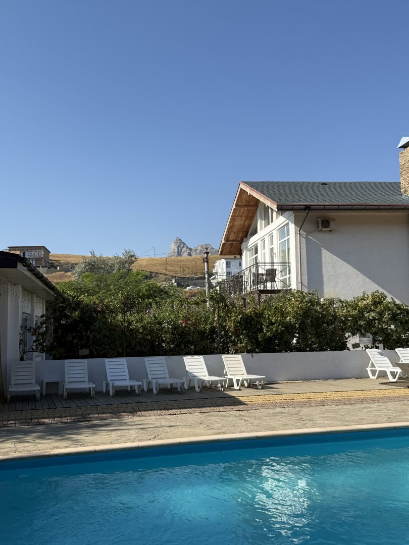 Номер маленький а напихано в нем очень много. При таком функционале площадь все таки должна быть больше. В стеклянную дверь с 5 утра светит солнце, занавески на окнах тонкие и сквозь них тоже светит прямо в лицо. Выспаться невозможно вообще. Огромное колличество комаров!! Впервые за всю жизнь столкнулась с комарами в Крыму. Приборов для уничтожения не предоставили. В описании столовая кафе по факту ее нет давно уже. Отдыхающая у бассейна в час ночи приехавшая компания шумела и смеялась ещё очень долго. Поспать в первый, как и в остальные дни не удалось. Хотя их и было всего два..Съехали на следующий день. Денег вернули с гулькин нос. Когда возвращали деньги выяснилось что в связи с ремонтом города( Коктебеля фактически нет - все закрыто перекрыто, но это уже мой косяк, я не знала что масштаб стройки ТАКОЙ)отель оплачивает постояльцам такси на все время! Я об этом узнала уже когда начала требовать обратно уплаченные немалые деньги за проживание. Очень разочарована