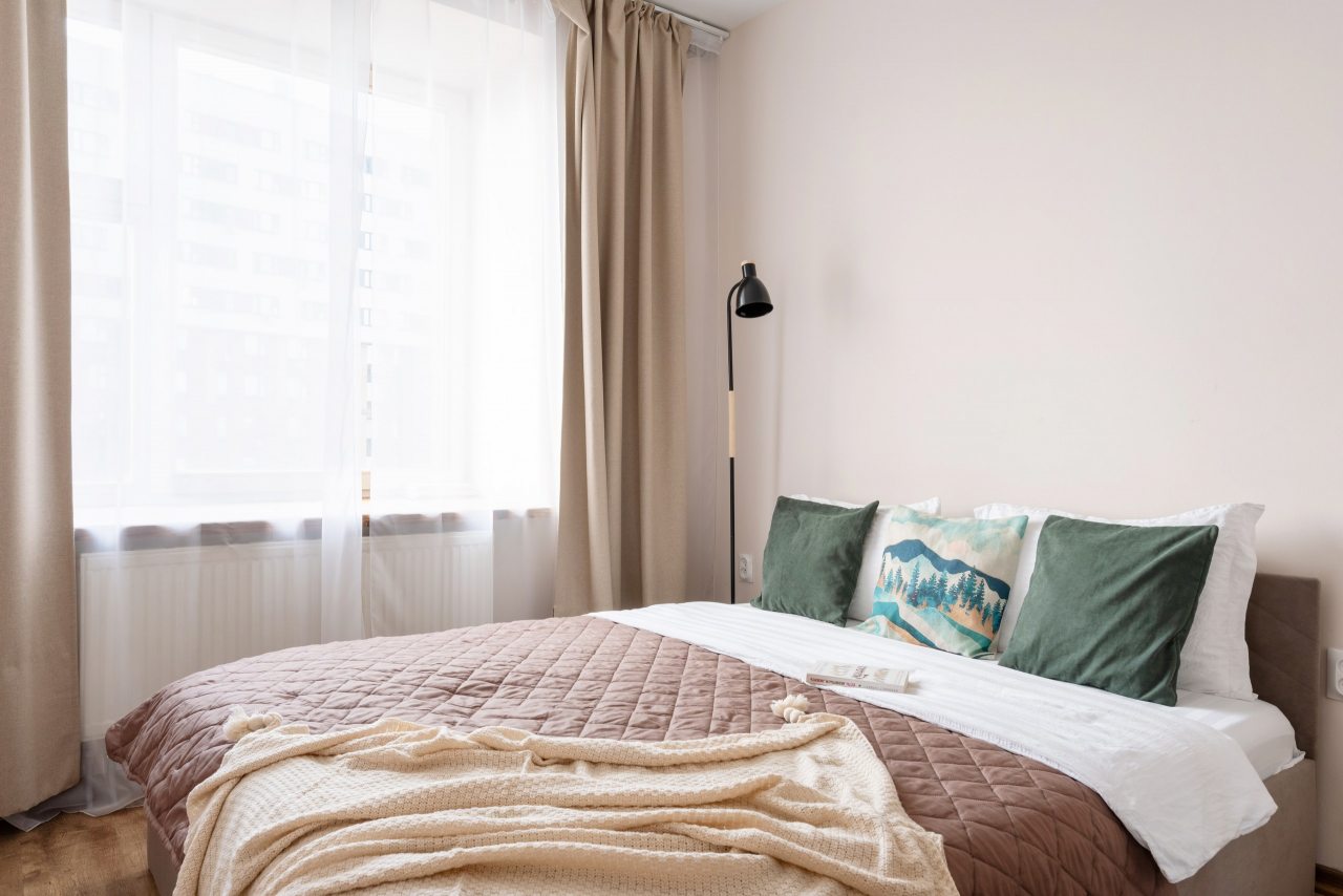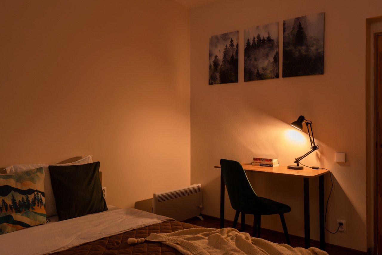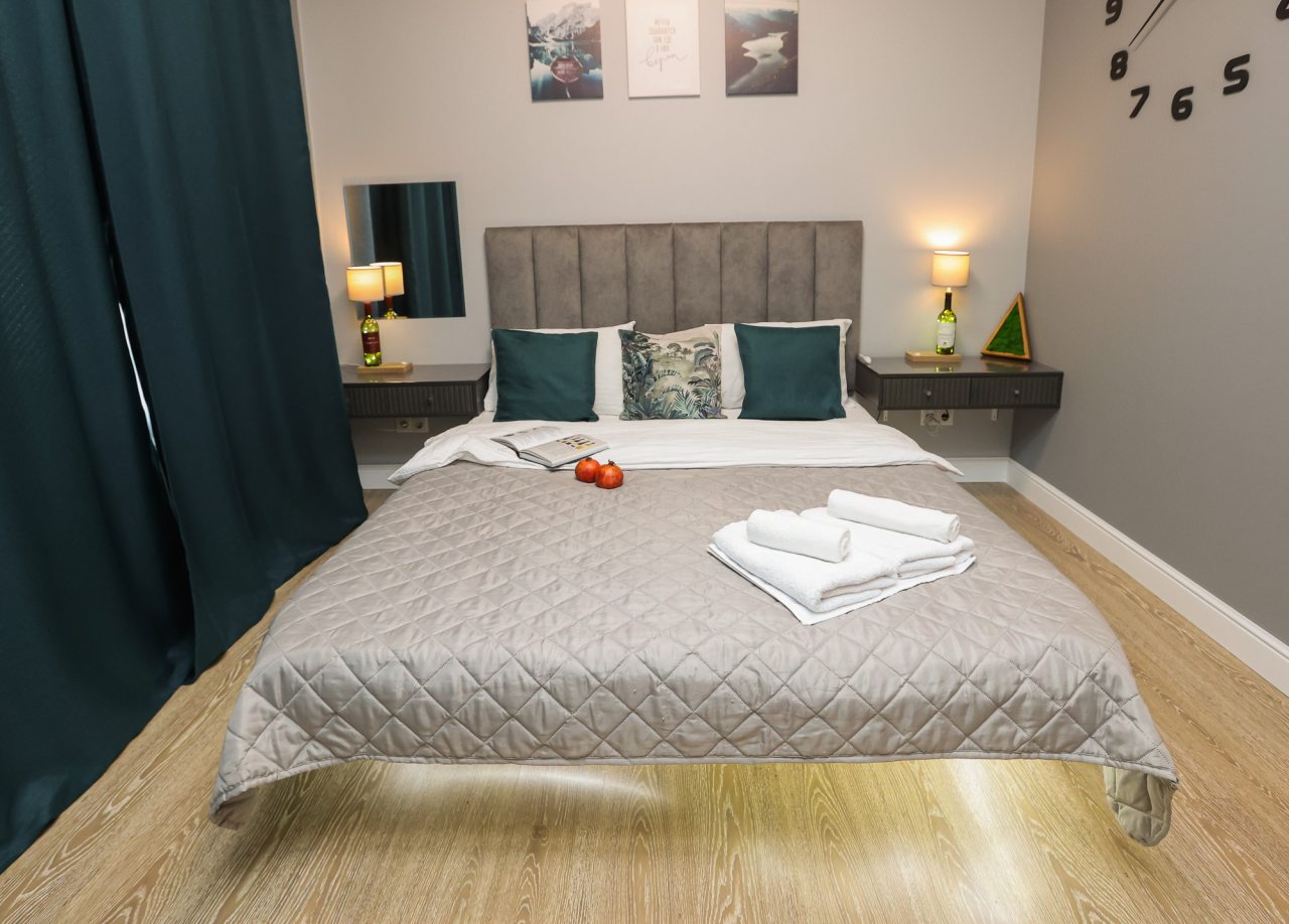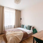 Для гостей предоставляются комфортабельные апартаменты с современным ремонтом. В них установлена вся необходимая техника и качественная мебель для удобства проживающих. Среди них: рабочее место со столом и стулом, удобная кровать, прикроватные тумбочки. В индивидуальной ванной комнате имеется сантехника, а также набор полотенец.