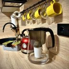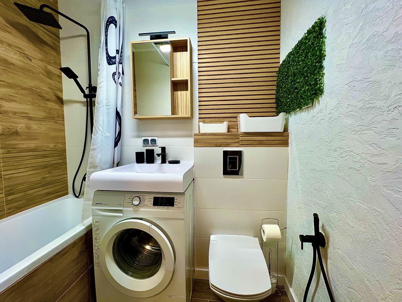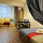 Апартаменты с современным ремонтом оснащены удобными спальными местами, розетками возле кровати, ЖК-телевизором, письменным столом, кондиционером для регулирования комфортной температуры, шкафом, Wi-Fi. Санузел укомплектован необходимой сантехникой, стиральной машиной, гигиеническим душем, феном и средствами личной гигиены.