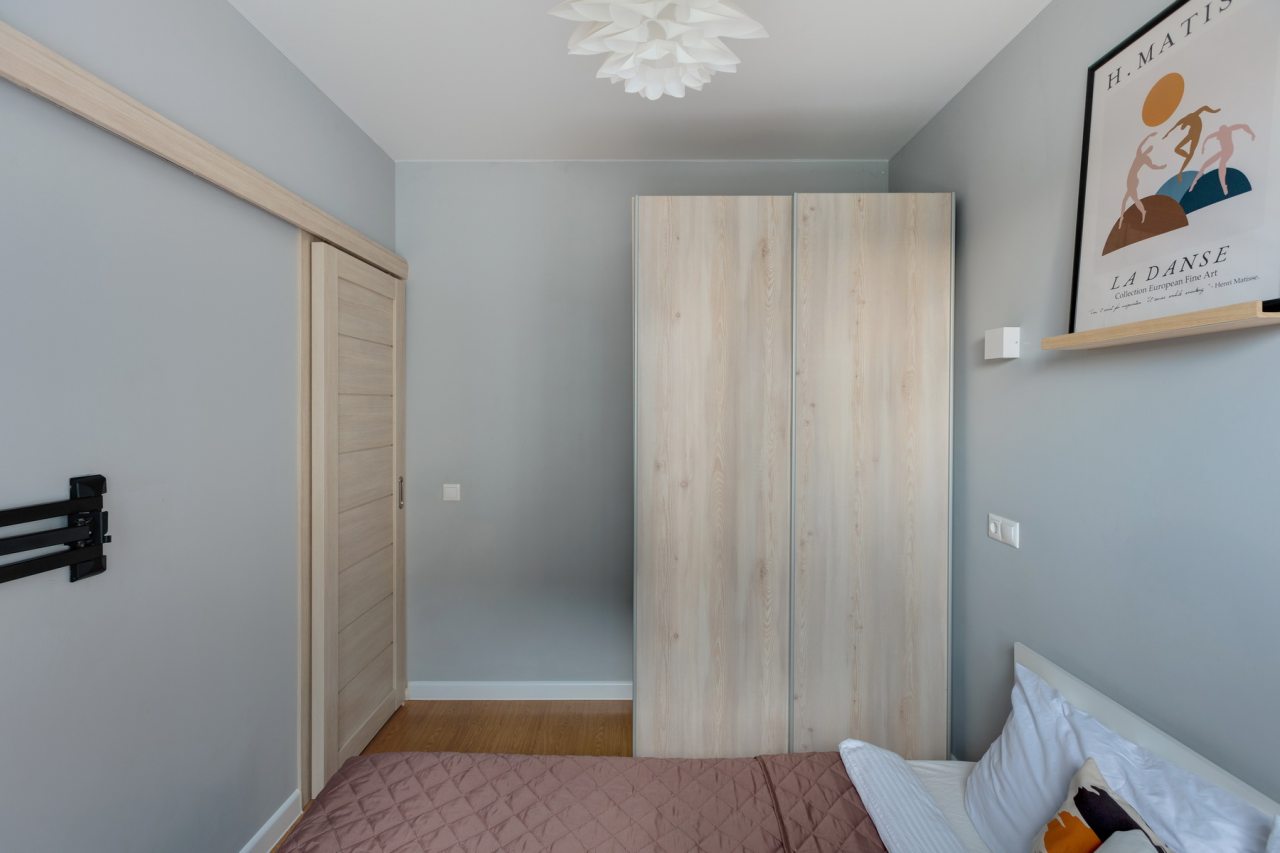 Этот вариант подойдет для проживания небольшой компанией, так как в наличии две двуспальные кровати, телевизор, шкаф, кондиционер, полноценная ванна, стиральная машина.