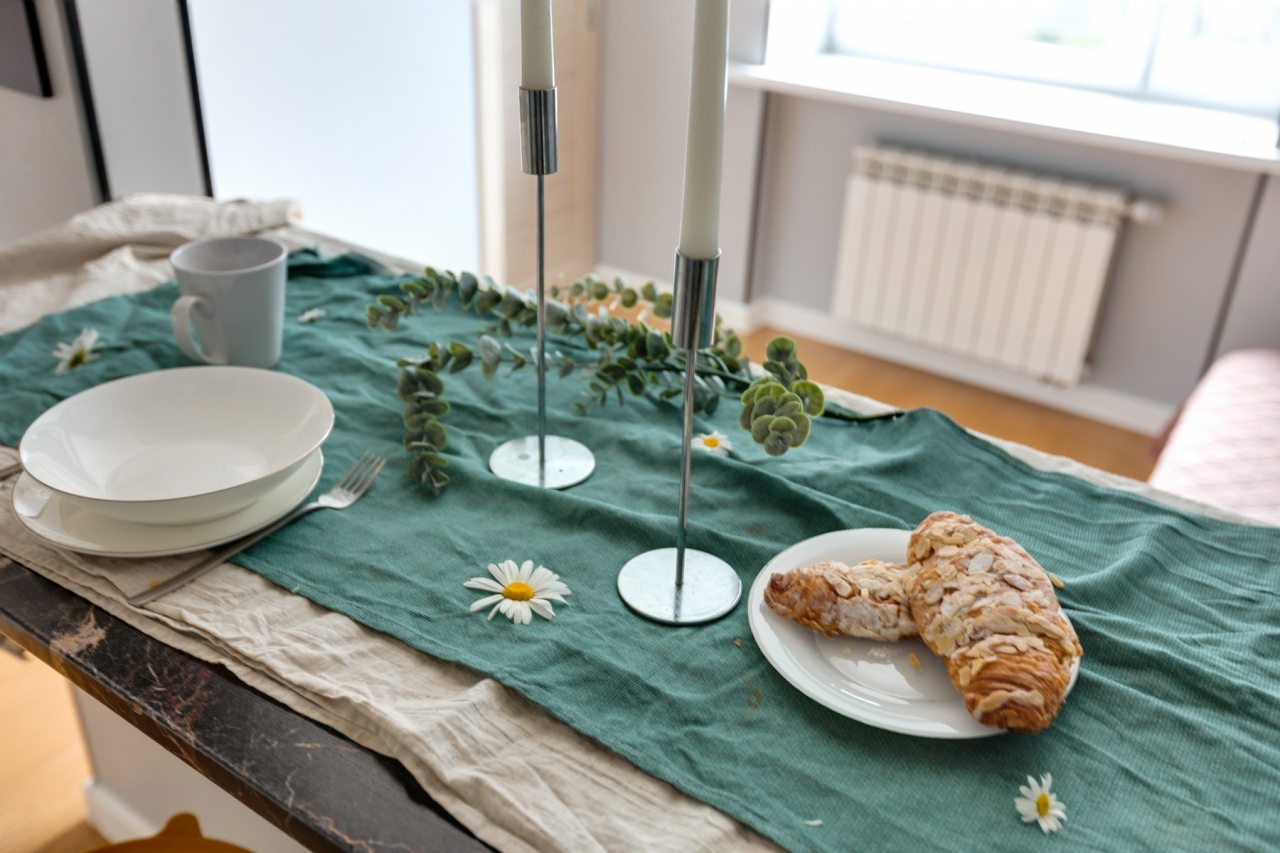 Компактная зона кухни вмещает холодильник, СВЧ-печь, плиту, чайник, вытяжку, посуду и столовые приборы. Таким образом, вы всегда сможете приготовить любимые блюда и напитки.