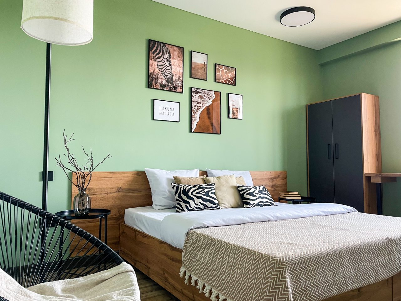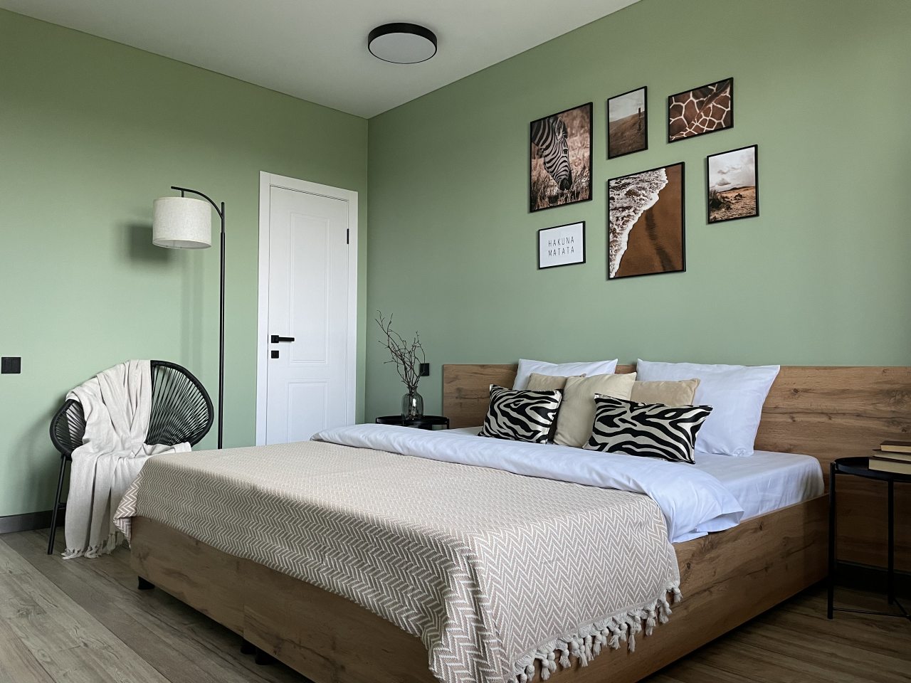 В стильной квартире с современным дизайном есть удобные кровати, ванная комната, стиральная машина, телевизор, бесплатный Wi-Fi, кондиционер, рабочий стол, шкаф, балкон.