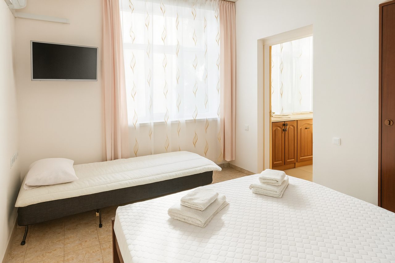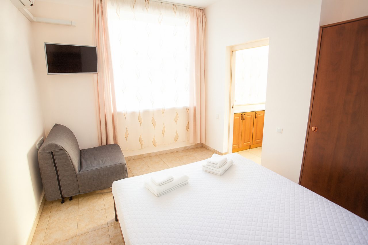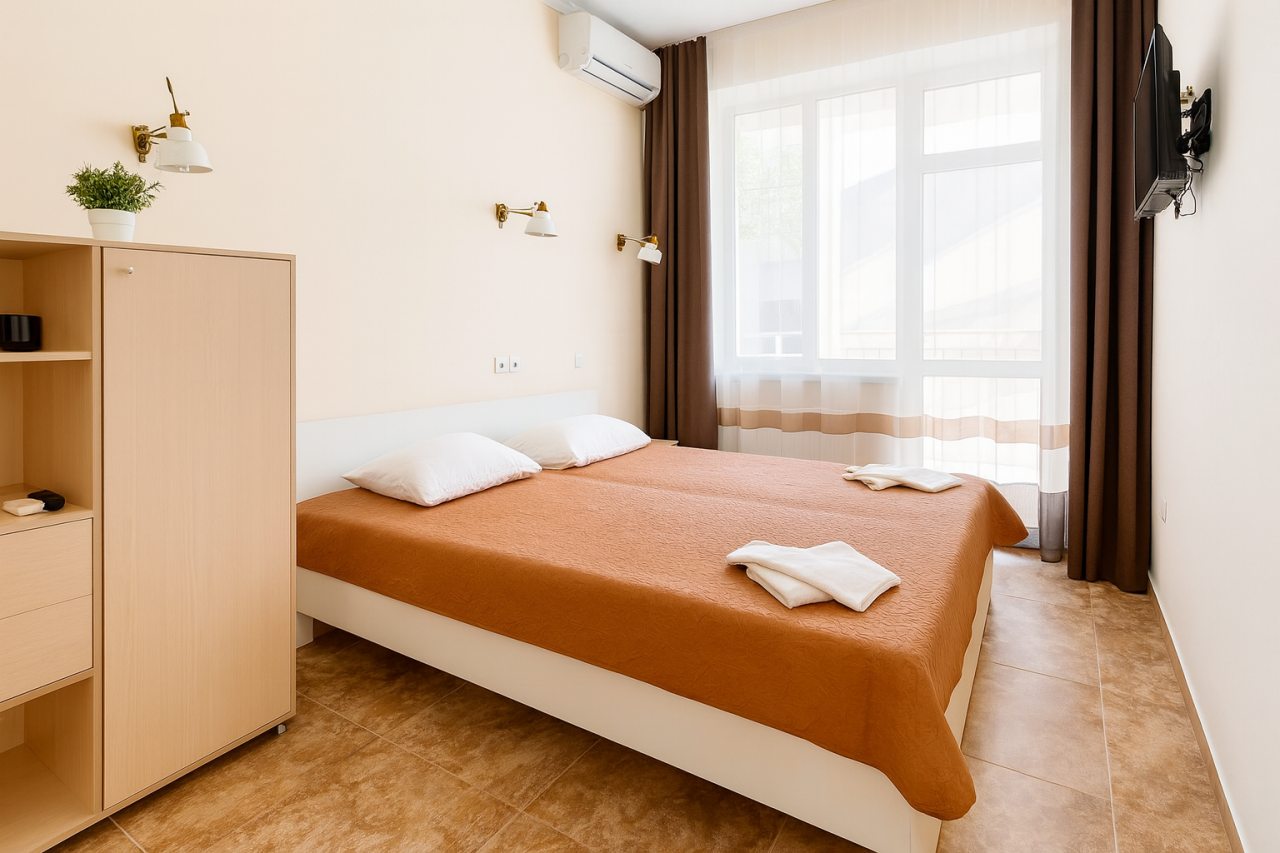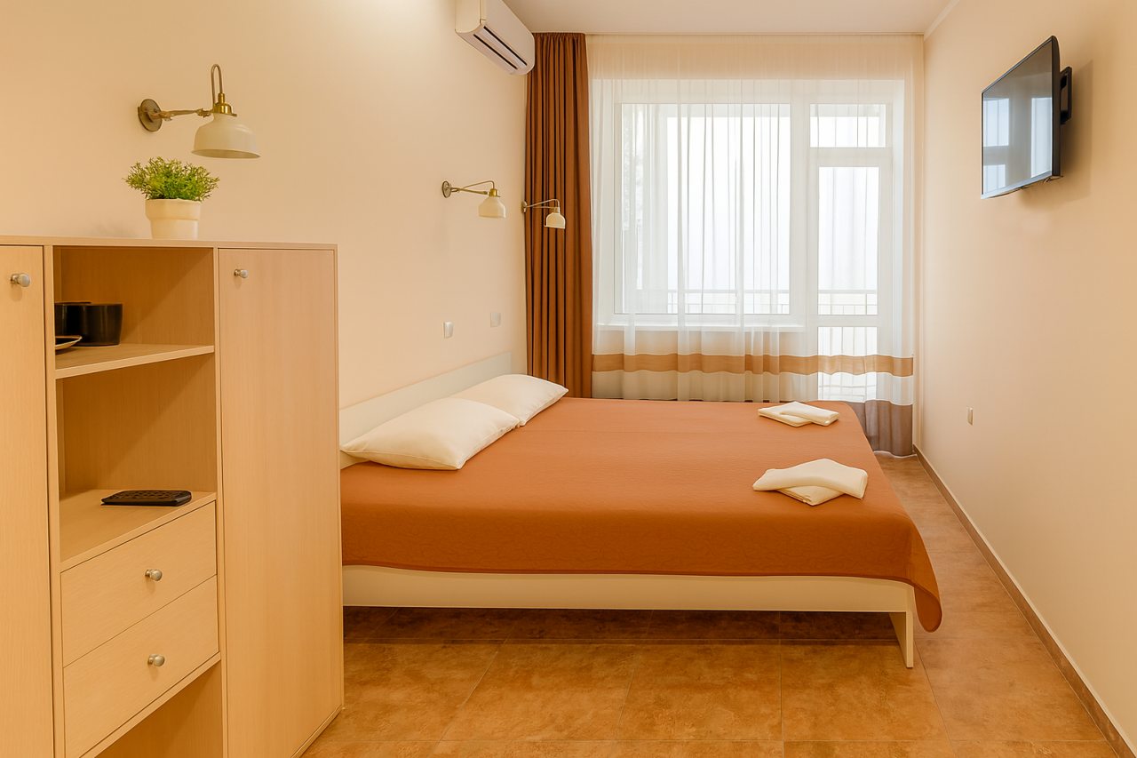 Отличный отель, мы здесь проживали недолго, но точно запомним этот отпуск! В отеле нас встретили вежливые администраторы, рассказали, как легче добраться до достопримечательностей. В номере все есть: удобная кровать, телевизор, работает вайфай. На кухне можно приготовить что-нибудь простое, но также можно сходить в перекусить в ближайшее кафе. До моря рукой подать, что для нас было главным критерием. В общем, мы остались довольны!