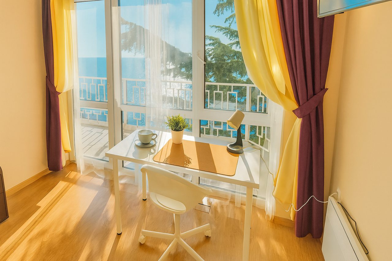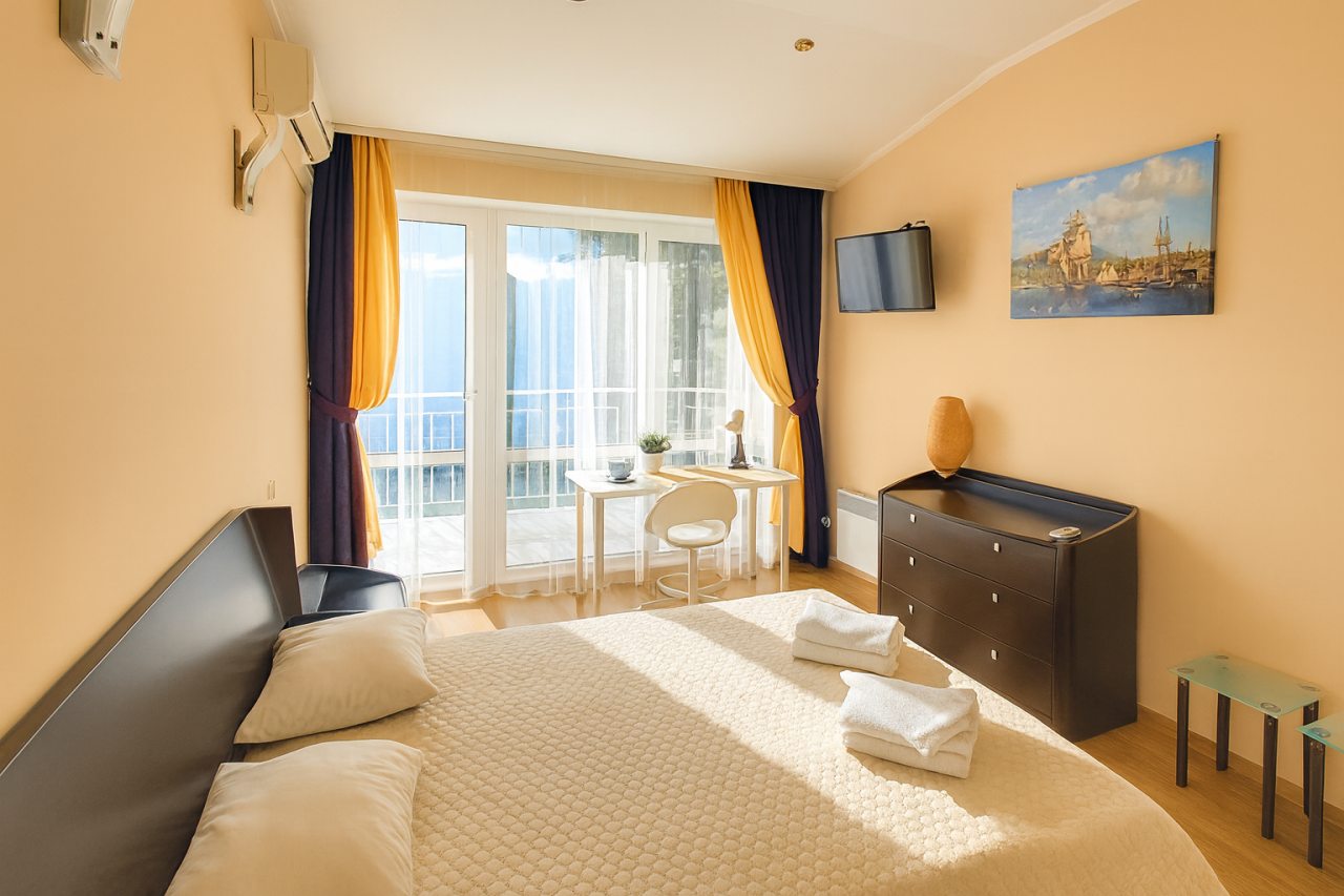 Самый большой плюс отеля - это вид! Ну просто волшебный, никаких денег не жалко! Номер был двухместный, очень комфортно и уютно, были выданы полотенца, в номере был холодильник, тв, чайник и, конечно же, балкон с шикарным видом! Рекомендуем всем, кто собирается в поездку в Крым!!