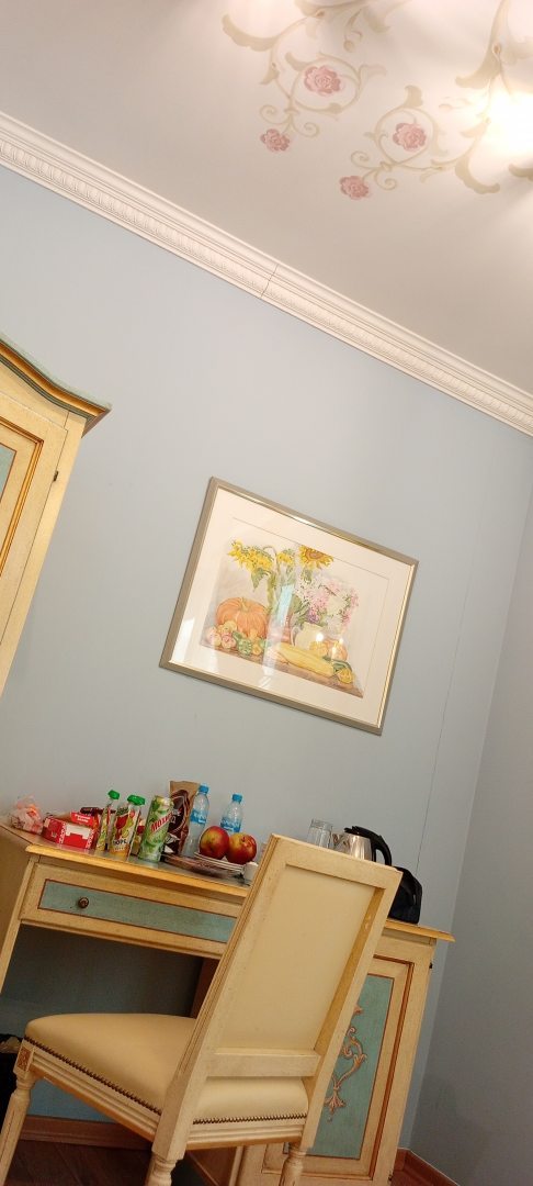 Отель поразил своим интерьером. Долго ходили по этажам, рассматривали картины и другие предметы искусства. Номер вызвал море эмоций интерьером, две стильные раковины на каменной столешнице в просторной ванной, отделанной керамогранитом с тёплым полом. Снимали номер на мансарде. Лежать на уютной кровати и смотреть в небо-это прекрасно. Чисто, уютно, комфортно, рядом остановка, до центра города пешком 10-15 минут по стариной части, где каждый домик как произведение искусства. Очень понравилось. Если приеду снова остановлюсь именно здесь.