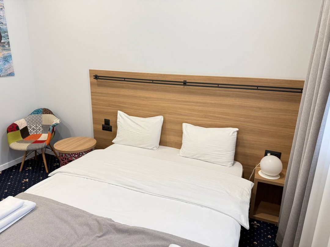 Номер очень чистый, красивый, современный отель. Очень приятное постельное белье, большая кровать. Есть фен, чай, кофе, набор зубных щеток с пастой, гель для душа, шампунь. Бесконтактный отель очень удобно. Входы все по коду. Расположение прям в центре города. Набережная рядом. Можно даже рыбку взять на прокат в номер. Есть своя бильярдная, настольный теннис. Завтрак замечательный, очень все вкусно. Мне очень понравилось. Цена недорогая, для такого номера и завтра. В следующий раз поеду только в этот отель.