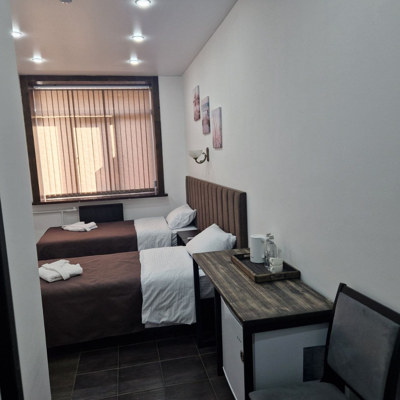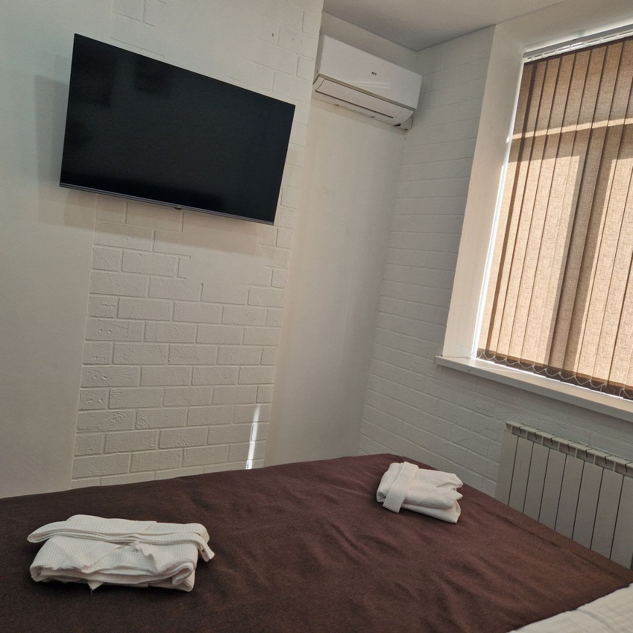 Номера оснащены всем самым необходимым, включая удобные кровати, телевизор, кондиционер, настенные бра, комплект полотенец, мебель для хранения вещей, а также индивидуальный санузел с раковиной, феном, туалетом, душевой.