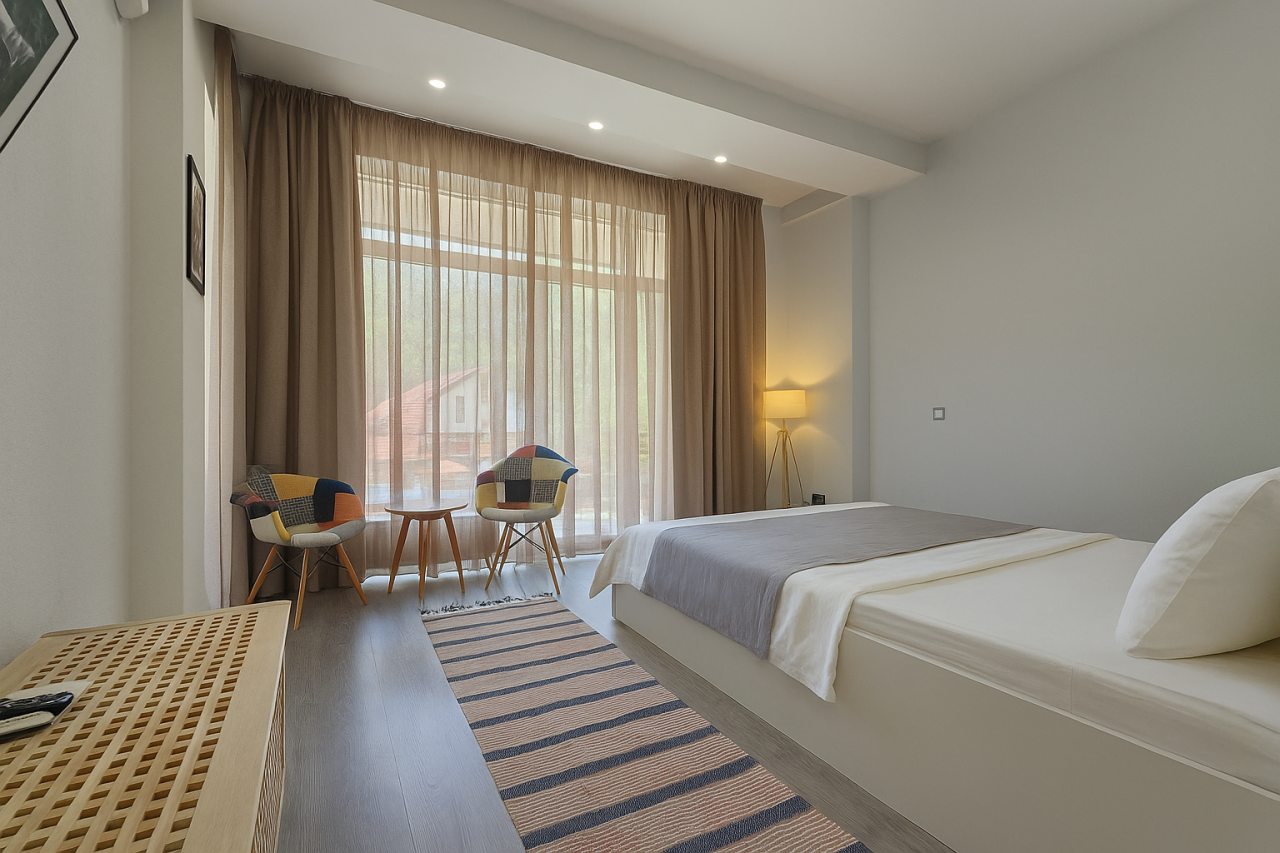 Уютные апартаменты с видом на горы включают кондиционер, плазменным телевизор, высокоскоростной Wi-Fi и просторную ванную комнату с душевой кабиной, феном, косметическими средствами и стиральной машиной.
