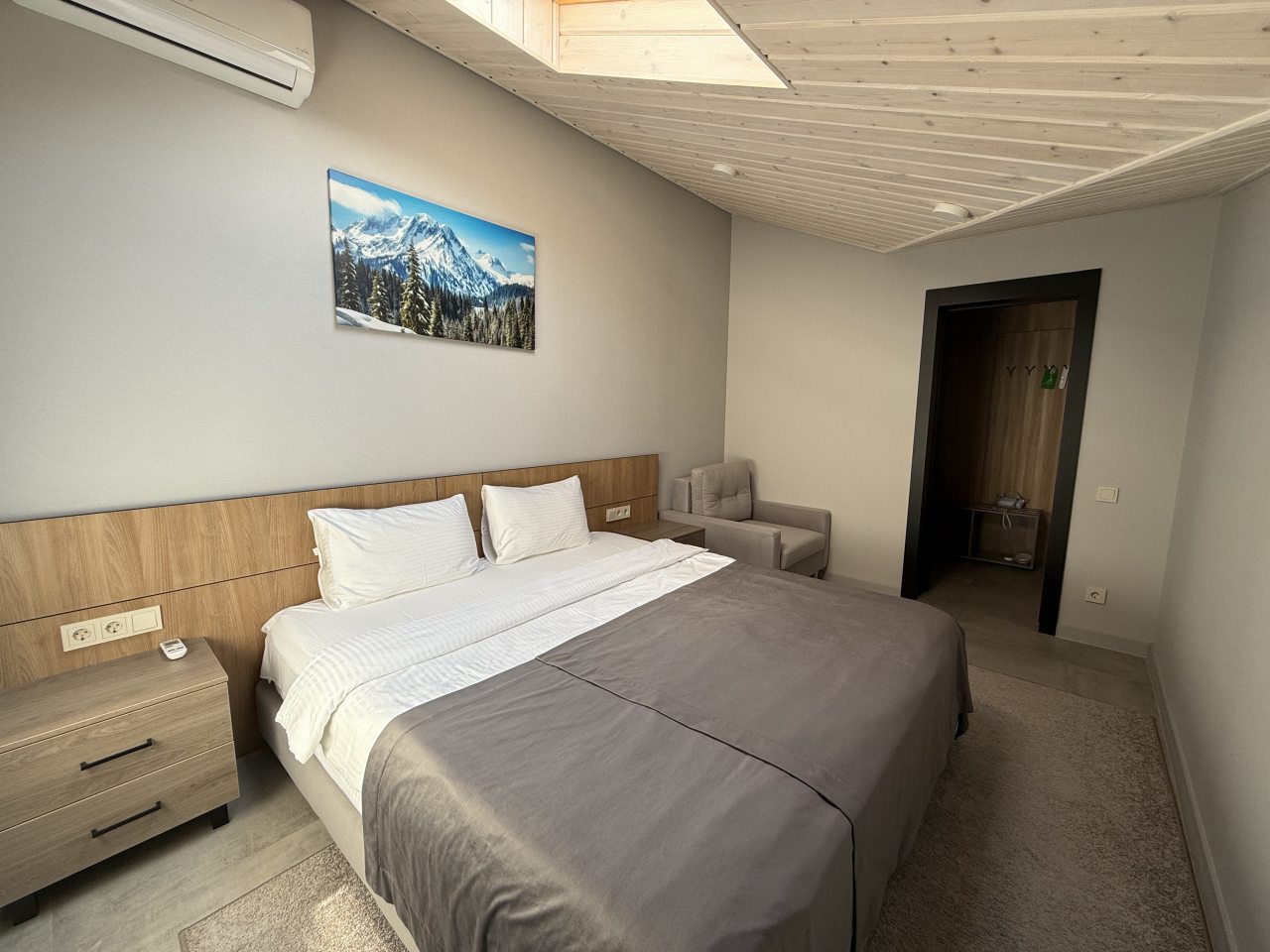 Проживание в отеле понравилось. Все что описано о номере и отеле совпадает на 100 . Выбрали номер без балкона (данные номера находятся на первом этаже). В период проживания с 30.06 по 2.07 проживающих не много. В отеле тихо и спокойно. На территории теплый бассейн и небольшая баня-бочка которые входят в стоимость проживания. При заселении доплатили за ребенка, хотя указывал при бронировании 2 взрослых и одного ребенка. Или это ошибка агрегатора при бронировании, либо сам не доглядел. На сайте агрегатора указано проживание ребенка от 0 до 9 лет без предоставления дополнительного места бесплатно. В номере предусмотрена 2х спальная кровать и одно раскладывающееся кресло-кровать. В любом случае отель понравился, и когда запланируем поездку в следующий раз обязательно остановимся здесь ещё раз при наличии мест.