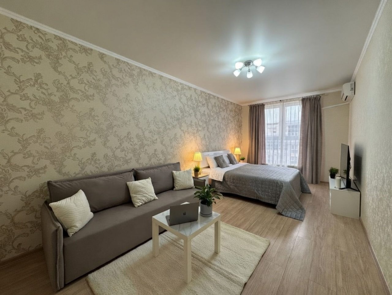 Чистая, удобная квартира. Идеально подходит для двух пар. Расположение удобное, рядом есть все необходимое!