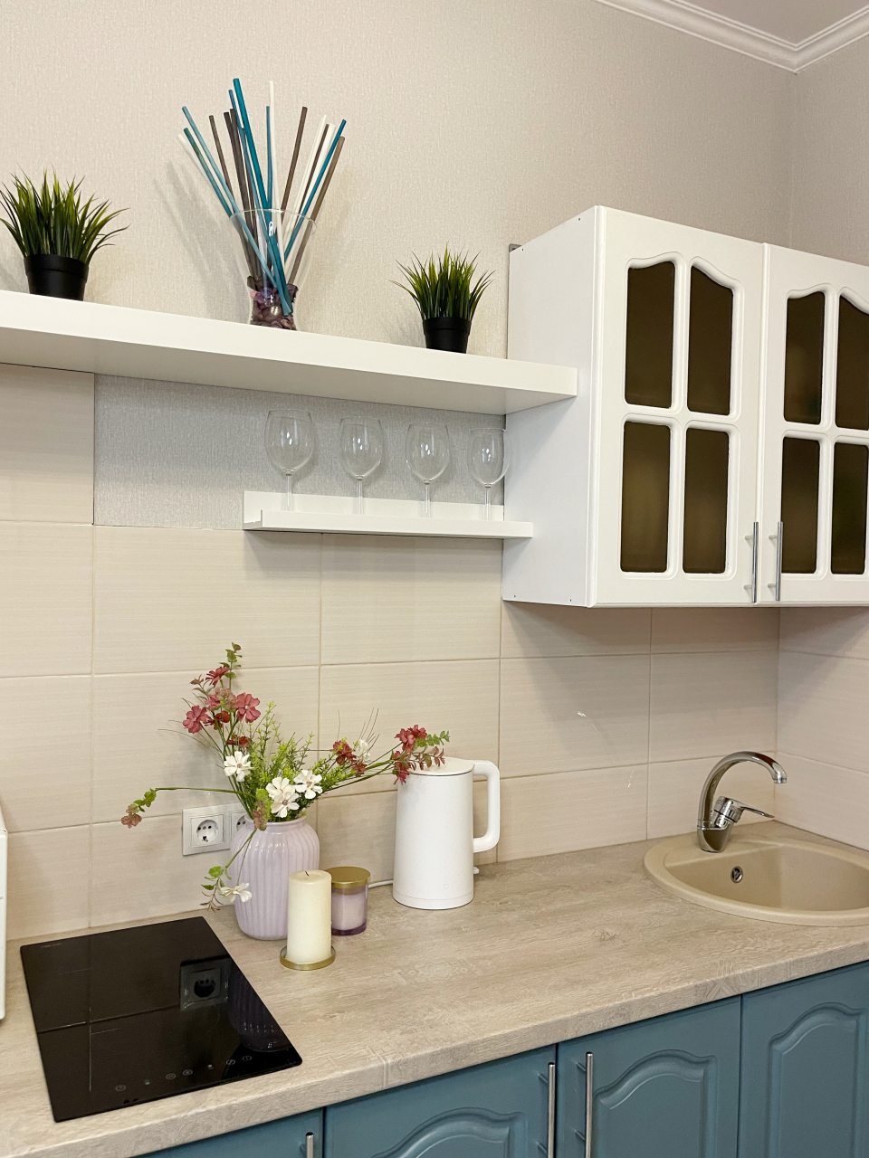 Комплектация кухонной техники может отличаться. В каждых апартаментах предусмотрены чайник, плита, СВЧ, холодильник, обеденная зона.