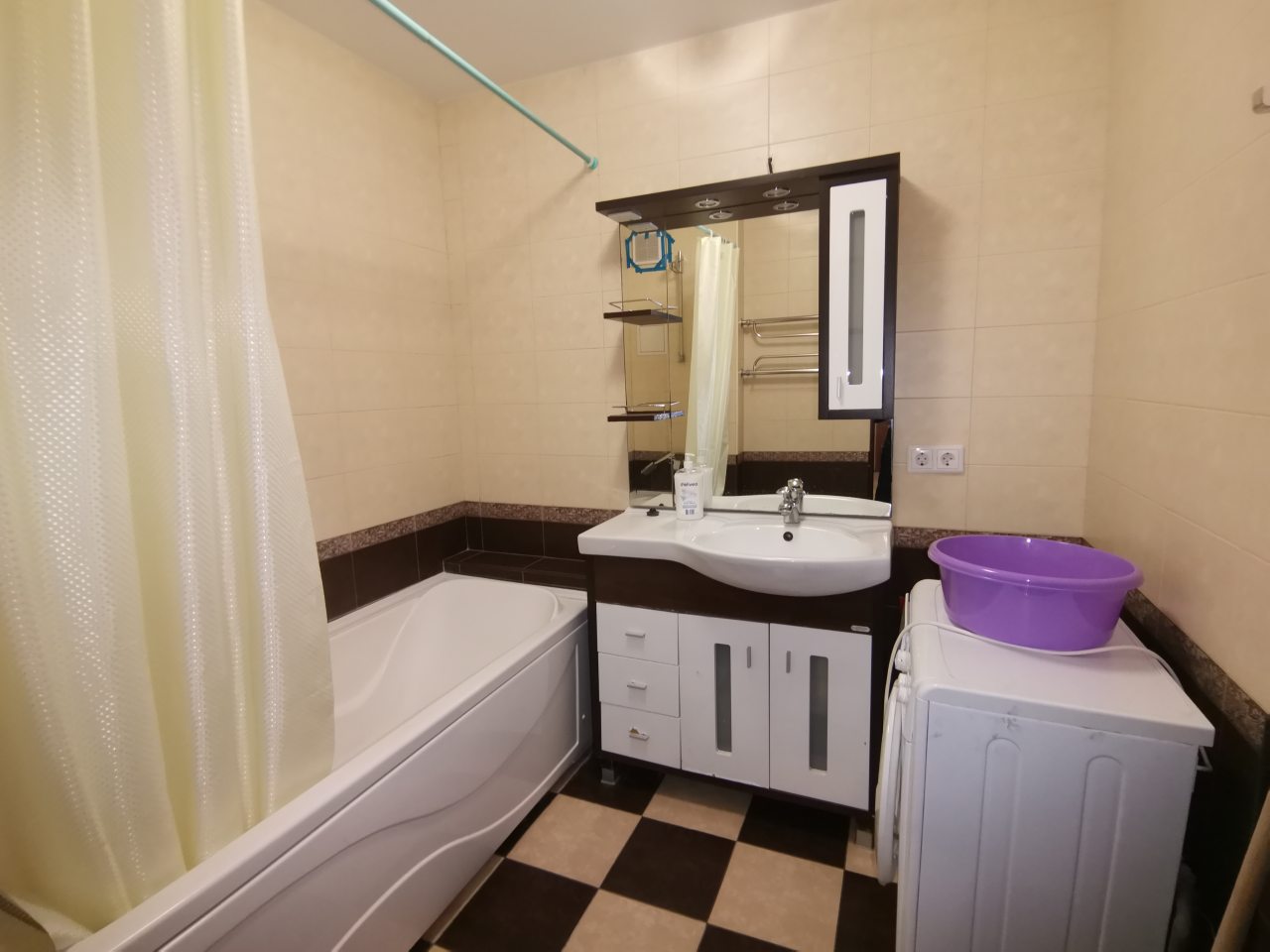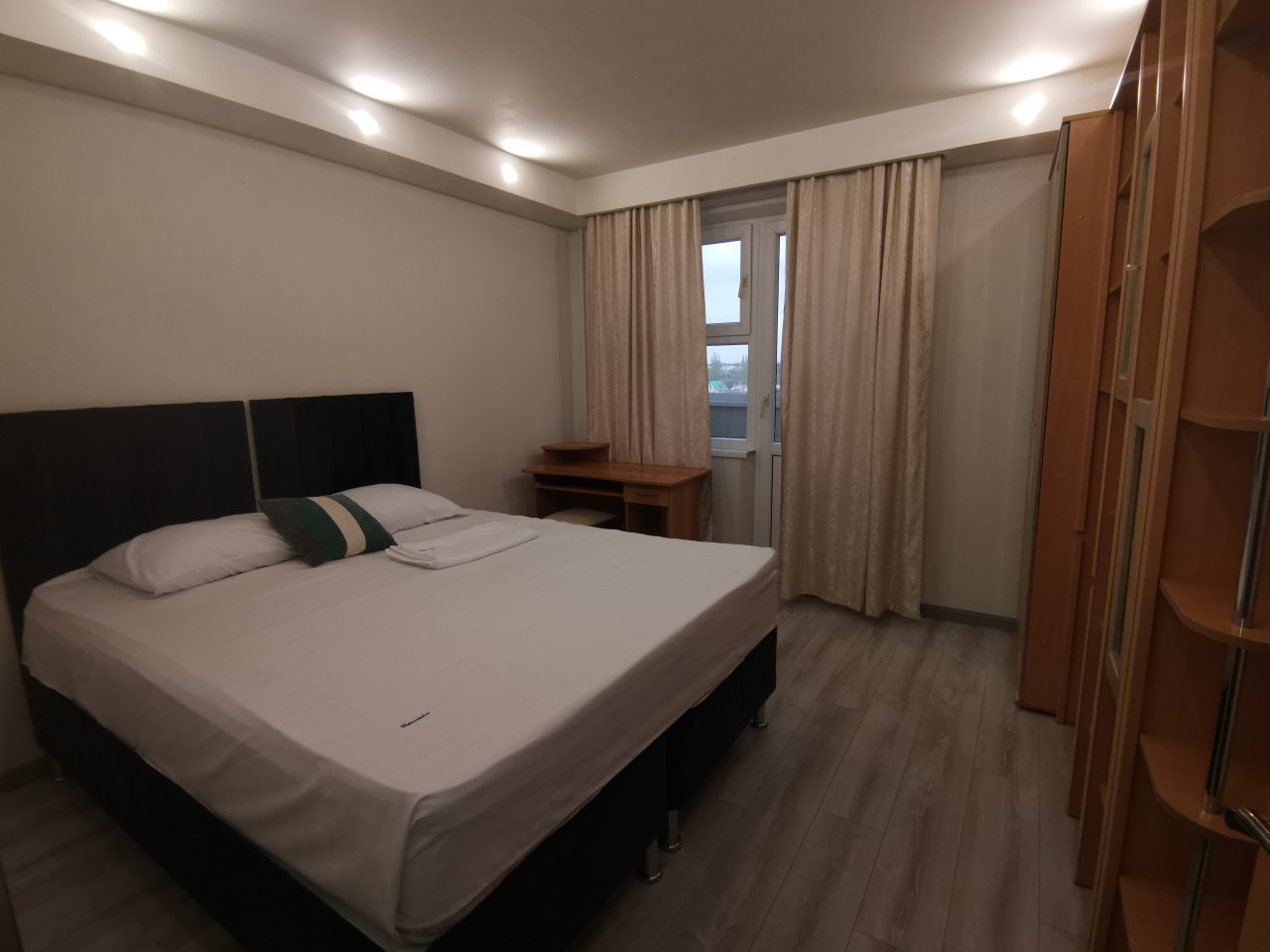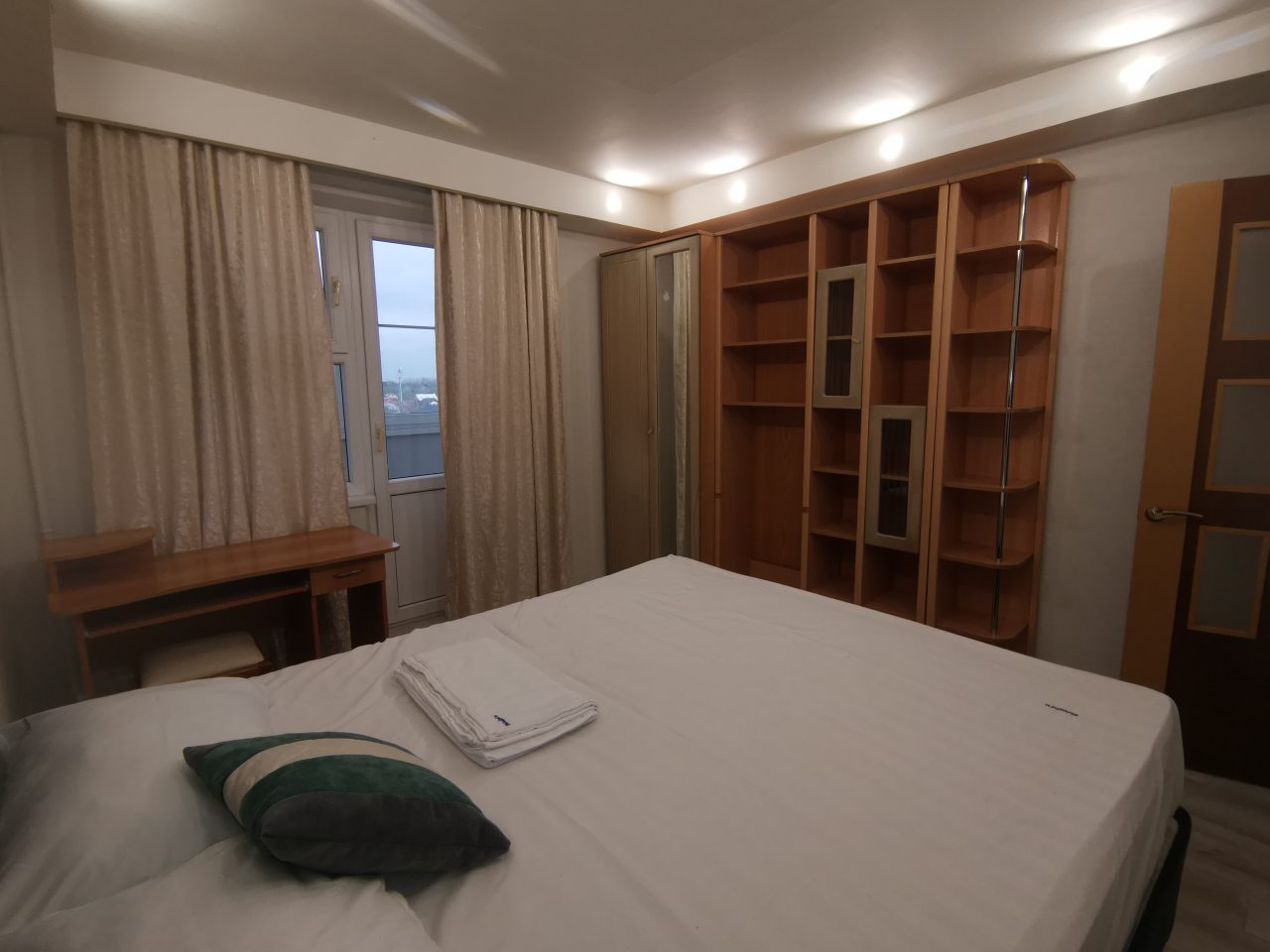 В апартаментах есть удобная мебель со свежим постельным бельем, лоджия и телевизор для просмотра любимых фильмов и новостей. А для старой доброй классики всегда под рукой видеопроигрыватель. К услугам удобный рабочий стол, где можно спокойно сосредоточиться на задачах. А для хранения вещей предусмотрен вместительный гардероб.
