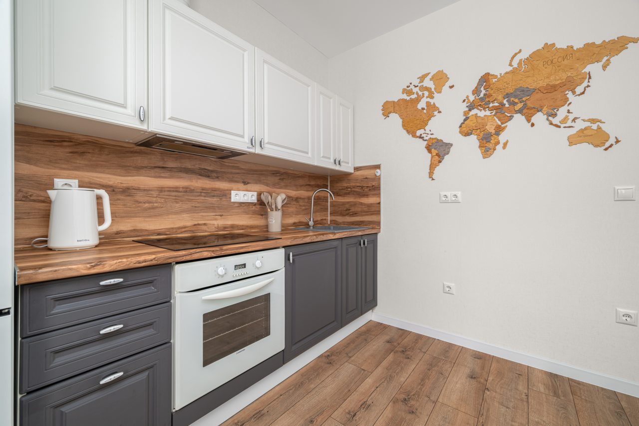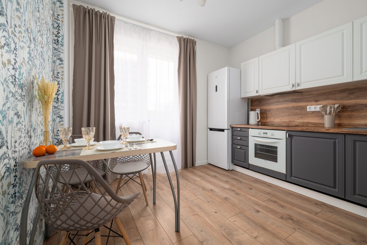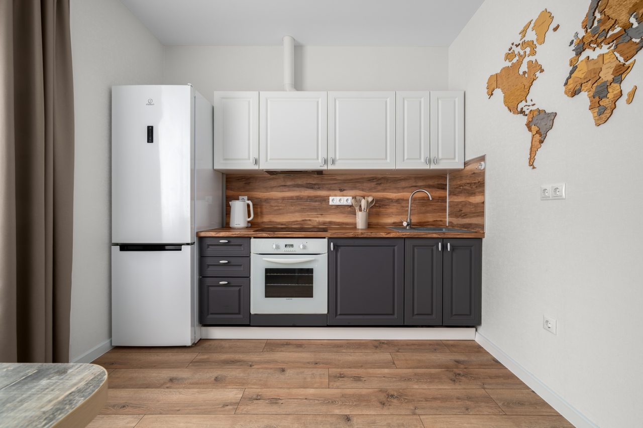 Кухня укомплектована чайником, варочной панелью, духовым шкафом, холодильником, различной посудой, обеденной зоной, чтобы вы в любой момент могли насладиться любимыми домашними напитками и блюдами.