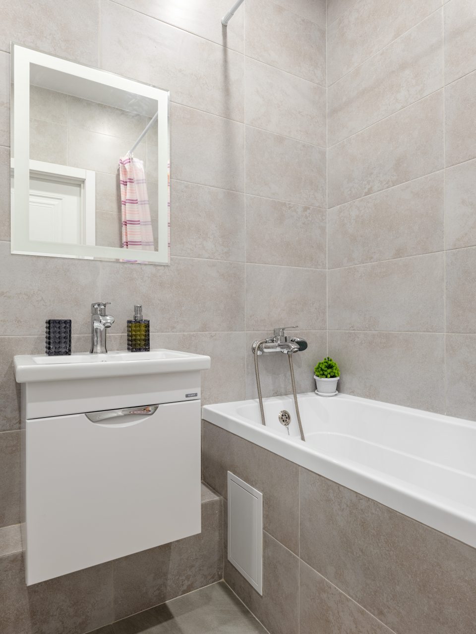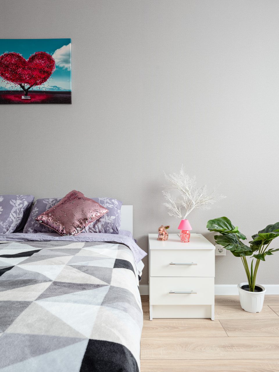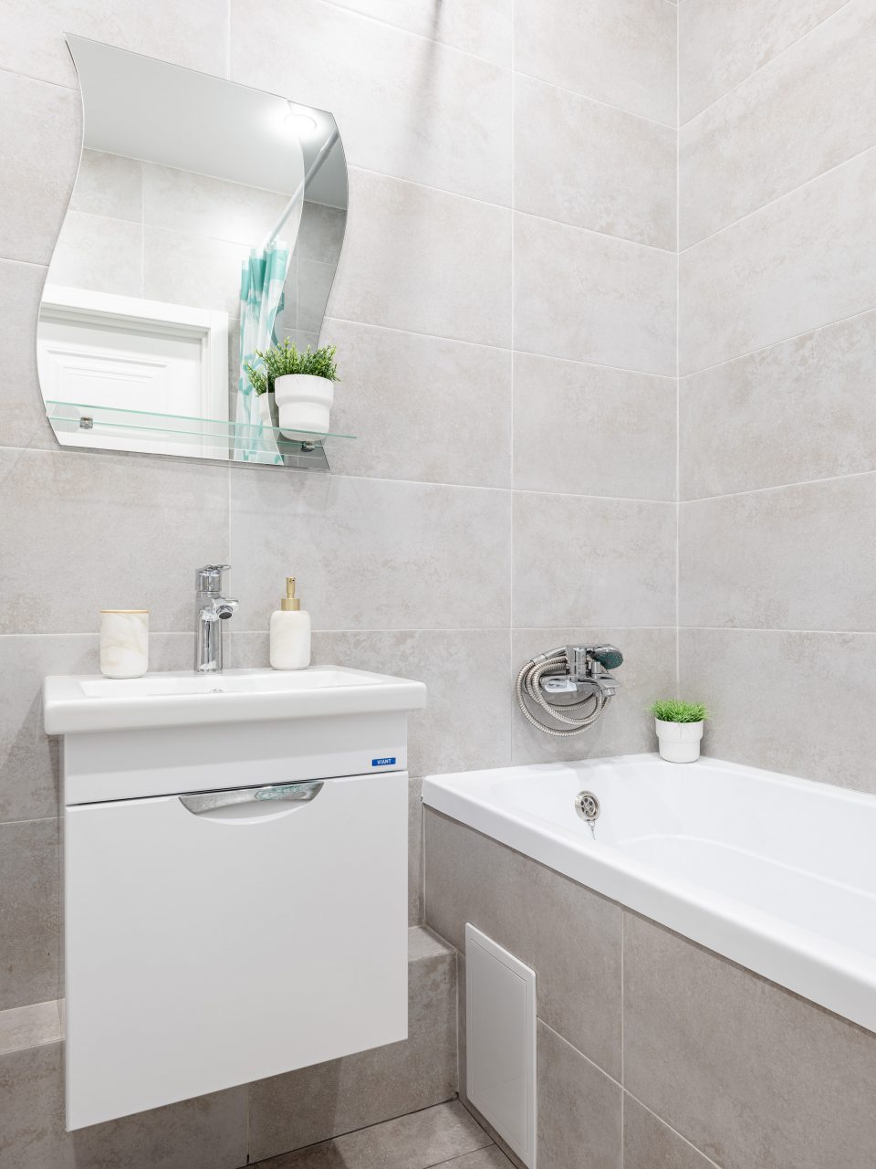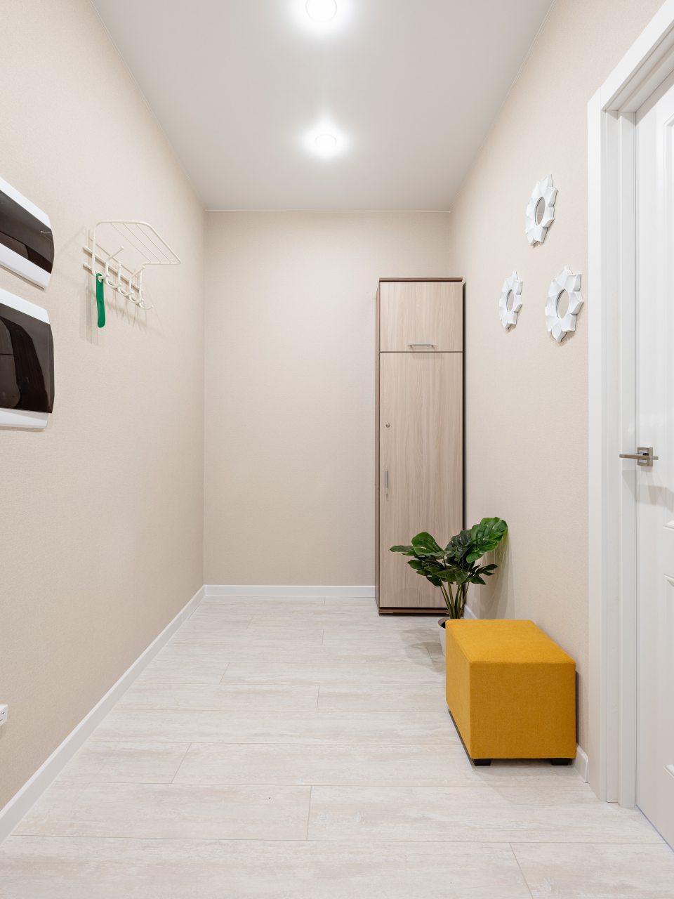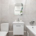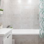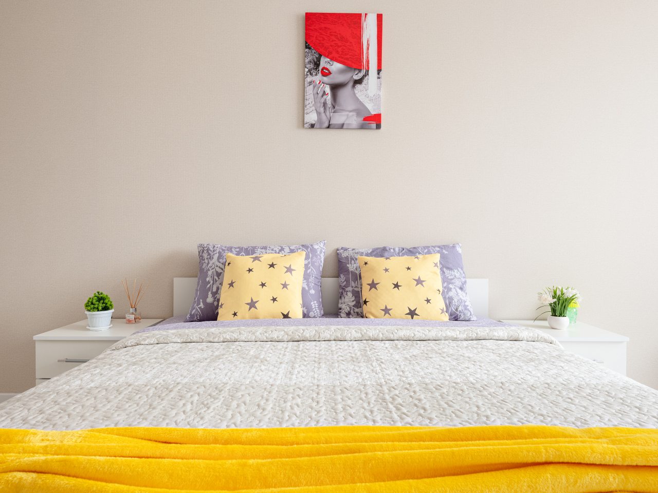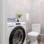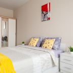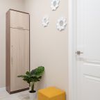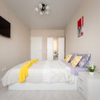 Светлая квартира выполнена в современной стилистике и оборудована удобными кроватями с набором чистого постельного белья, прикроватной мебелью, индивидуальной системой кондиционирования, гладильными принадлежностями, шкафом для хранения одежды, телевизором. Доступна точка wi-fi и кабельное телевидение. Санузел укомплектован необходимой сантехникой, полотенцесушителем, стиральной машиной и феном для волос.