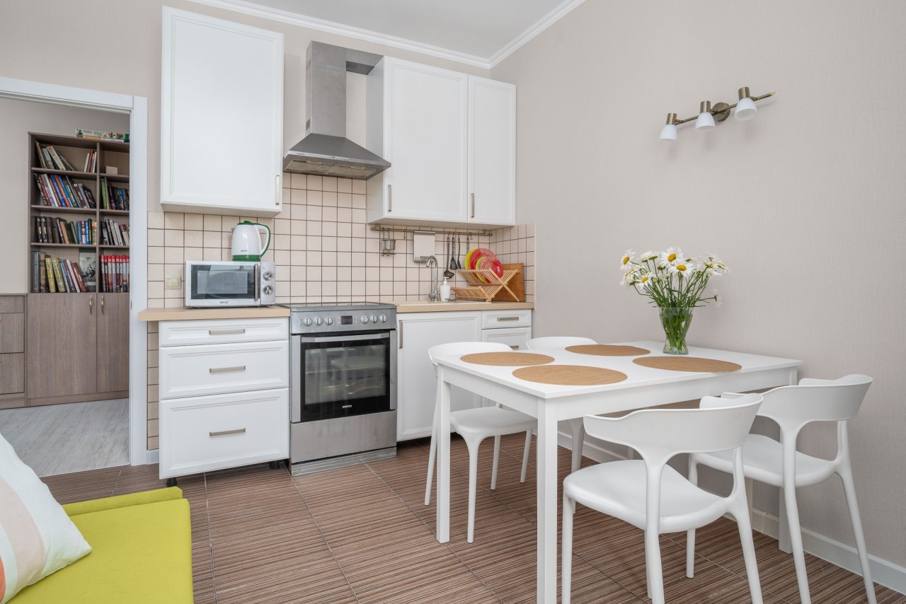 На кухне есть стандартный набор бытовой техники. Организовать питание можно в кавказском ресторане в здании дома или в других заведениях поблизости.